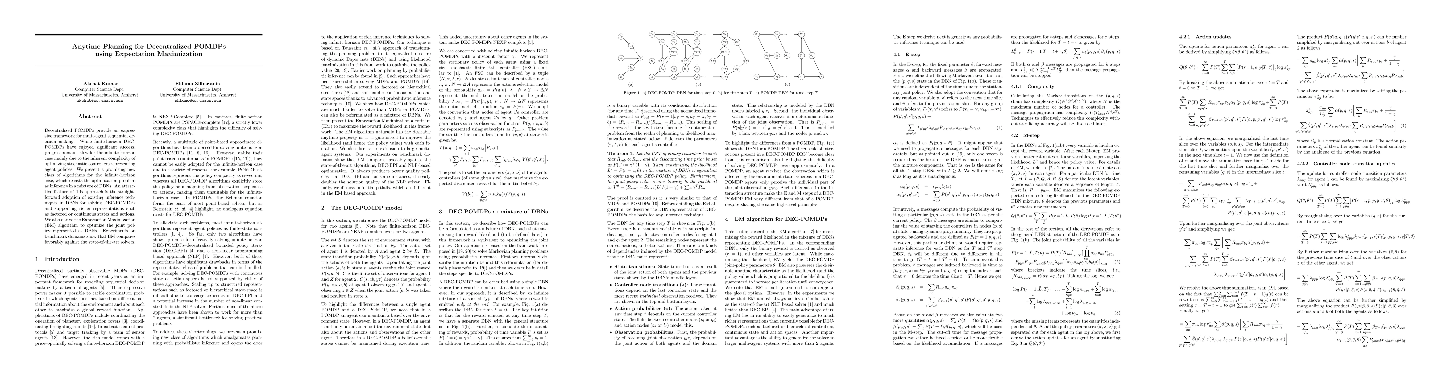 Decentralized POMDPs provide an expressive framework for multi-agent sequential decision making. While fnite-horizon DECPOMDPs have enjoyed signifcant success, progress remains slow for the infnite-horizon case mainly due to the inherent complexity of optimizing stochastic controllers representing agent policies. We present a promising new class of algorithms for the infnite-horizon case, which recasts the optimization problem as inference in a mixture of DBNs. An attractive feature of this approach is the straightforward adoption of existing inference techniques in DBNs for solving DEC-POMDPs and supporting richer representations such as factored or continuous states and actions. We also derive the Expectation Maximization (EM) algorithm to optimize the joint policy represented as DBNs. Experiments on benchmark domains show that EM compares favorably against the state-of-the-art solvers.