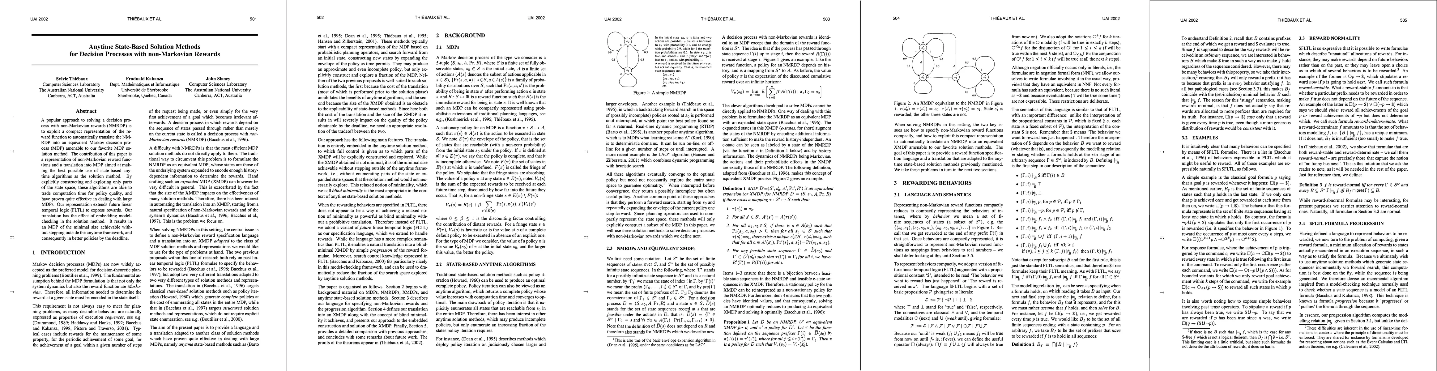 This paper proposes a method to represent non-Markovian rewards using future linear temporal logic and translates them into an equivalent Markov decision process (MDP). The approach aims to leverage state-based anytime algorithms for optimal policy generation within a given time constraint.