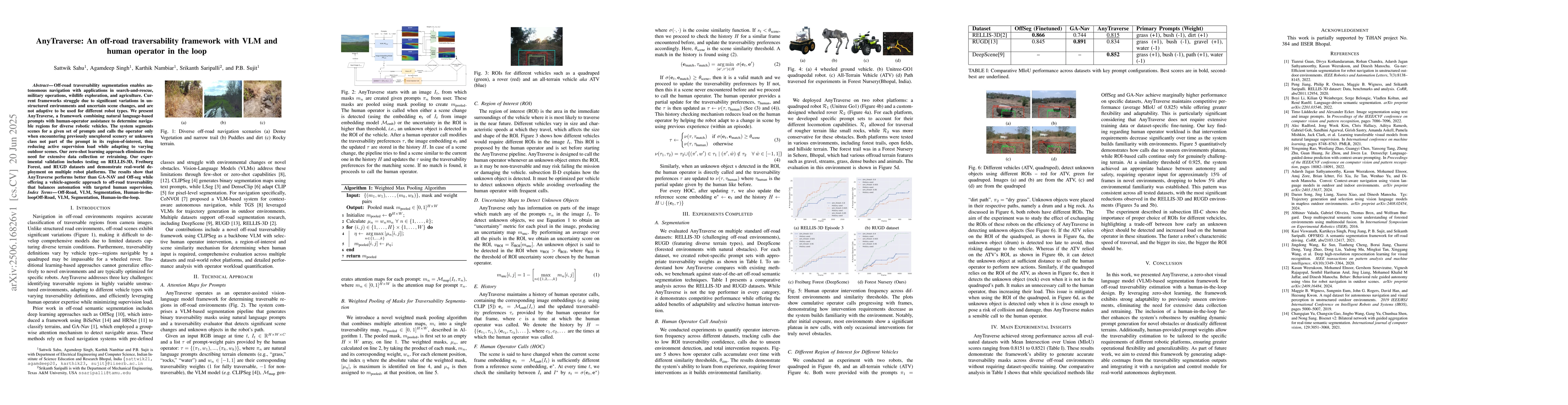 Off-road traversability segmentation enables autonomous navigation with applications in search-and-rescue, military operations, wildlife exploration, and agriculture. Current frameworks struggle due to significant variations in unstructured environments and uncertain scene changes, and are not adaptive to be used for different robot types. We present AnyTraverse, a framework combining natural language-based prompts with human-operator assistance to determine navigable regions for diverse robotic vehicles. The system segments scenes for a given set of prompts and calls the operator only when encountering previously unexplored scenery or unknown class not part of the prompt in its region-of-interest, thus reducing active supervision load while adapting to varying outdoor scenes. Our zero-shot learning approach eliminates the need for extensive data collection or retraining. Our experimental validation includes testing on RELLIS-3D, Freiburg Forest, and RUGD datasets and demonstrate real-world deployment on multiple robot platforms. The results show that AnyTraverse performs better than GA-NAV and Off-seg while offering a vehicle-agnostic approach to off-road traversability that balances automation with targeted human supervision.