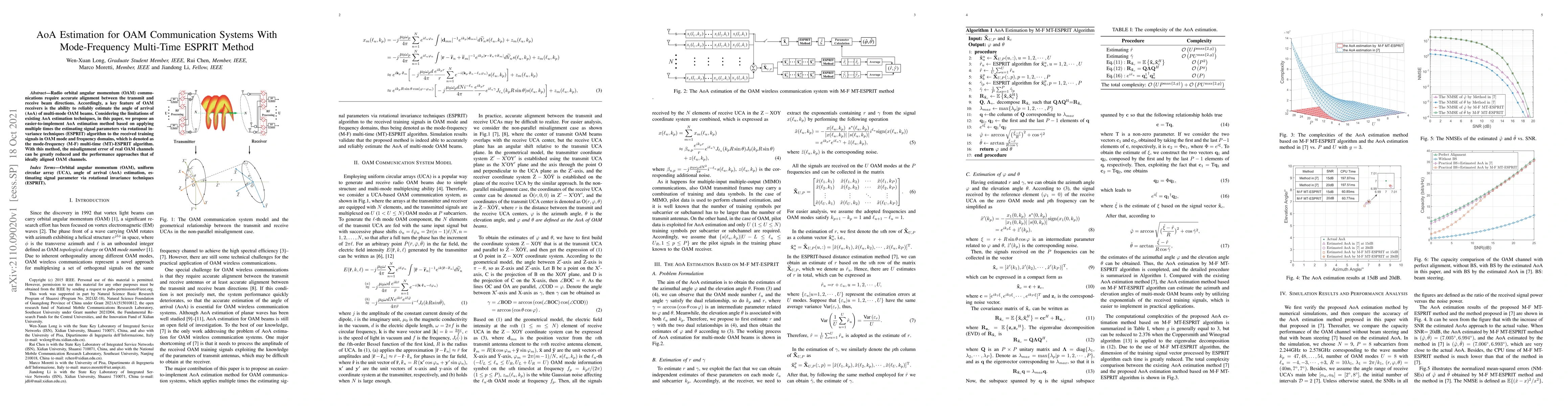 This paper proposes a mode-frequency multi-time ESPRIT method for estimating the angle of arrival (AoA) in orbital angular momentum (OAM) communication systems, significantly reducing misalignment errors and improving performance compared to existing techniques. The method applies the ESPRIT algorithm multiple times across OAM modes and frequency domains to enhance AoA estimation accuracy.