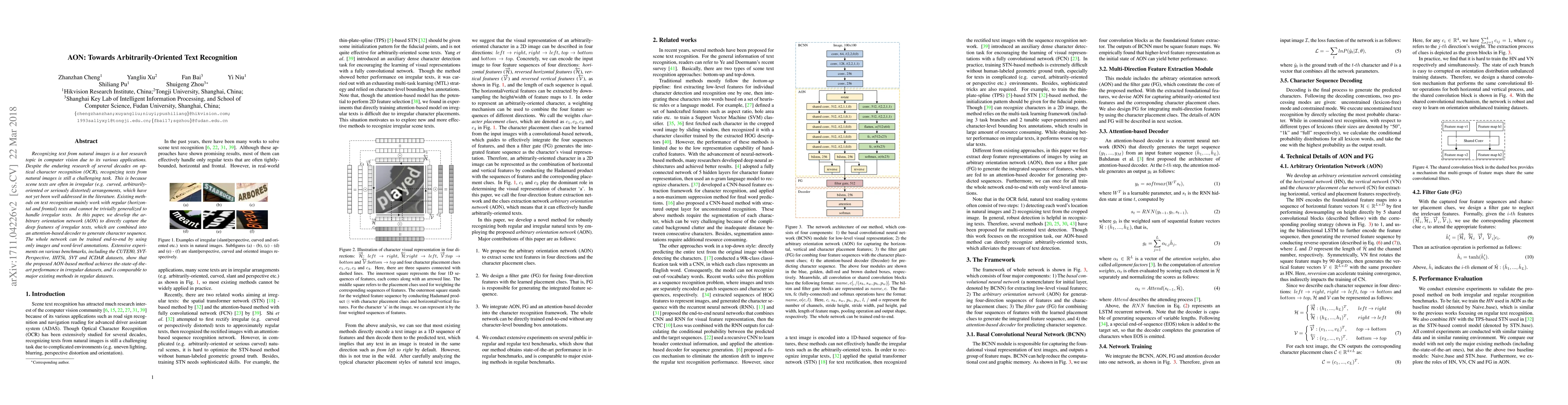 The paper introduces the arbitrary orientation network (AON) for recognizing irregularly oriented text in natural images, achieving state-of-the-art performance on irregular text datasets while being competitive on regular text datasets. The AON captures deep features of irregular texts and uses an attention-based decoder for character sequence generation.