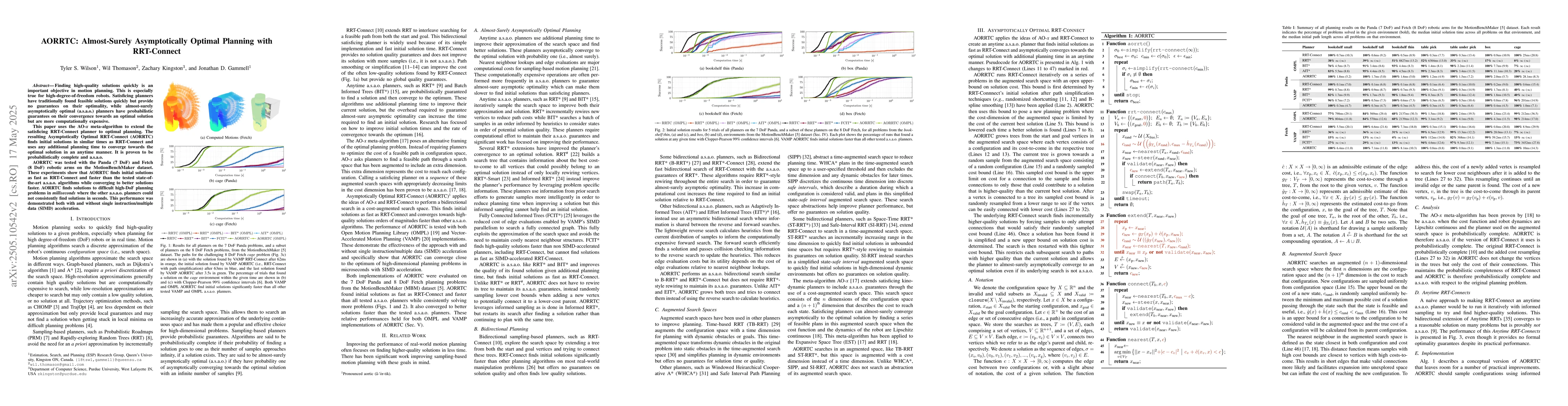 AORRTC combines the efficiency of RRT-Connect with the optimality guarantees of a.s.a.o. planners, outperforming existing algorithms in both speed and solution quality for high-DoF robot motion planning.