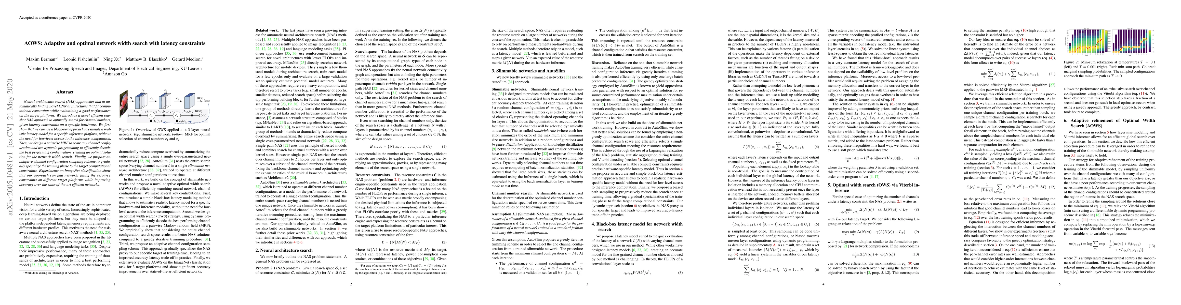 Neural architecture search (NAS) approaches aim at automatically finding novel CNN architectures that fit computational constraints while maintaining a good performance on the target platform. We introduce a novel efficient one-shot NAS approach to optimally search for channel numbers, given latency constraints on a specific hardware. We first show that we can use a black-box approach to estimate a realistic latency model for a specific inference platform, without the need for low-level access to the inference computation. Then, we design a pairwise MRF to score any channel configuration and use dynamic programming to efficiently decode the best performing configuration, yielding an optimal solution for the network width search. Finally, we propose an adaptive channel configuration sampling scheme to gradually specialize the training phase to the target computational constraints. Experiments on ImageNet classification show that our approach can find networks fitting the resource constraints on different target platforms while improving accuracy over the state-of-the-art efficient networks.