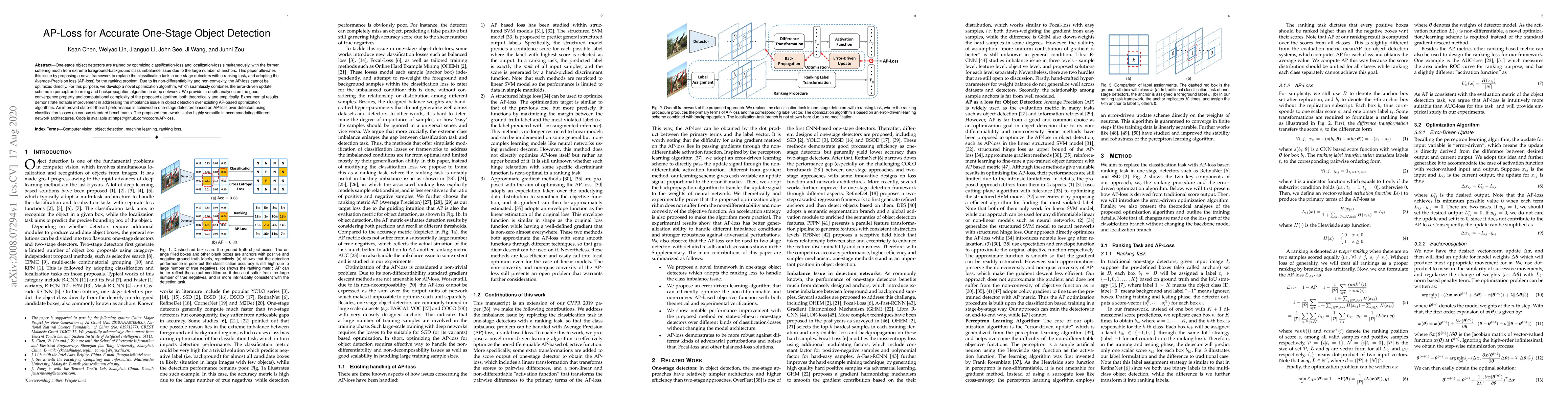 A new framework for one-stage object detection is proposed, replacing traditional classification tasks with a ranking task using Average-Precision loss (AP-loss), leading to improved performance in addressing class imbalance issues.