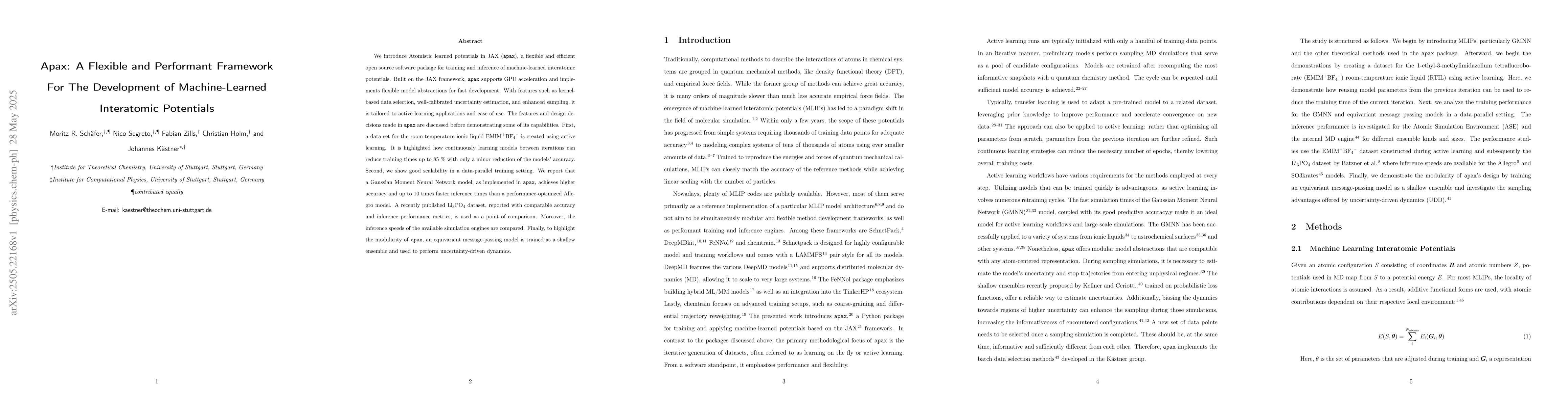 The research introduces apax, a flexible and efficient open-source software package built on JAX for training and inference of machine-learned interatomic potentials, supporting GPU acceleration and featuring flexible model abstractions.