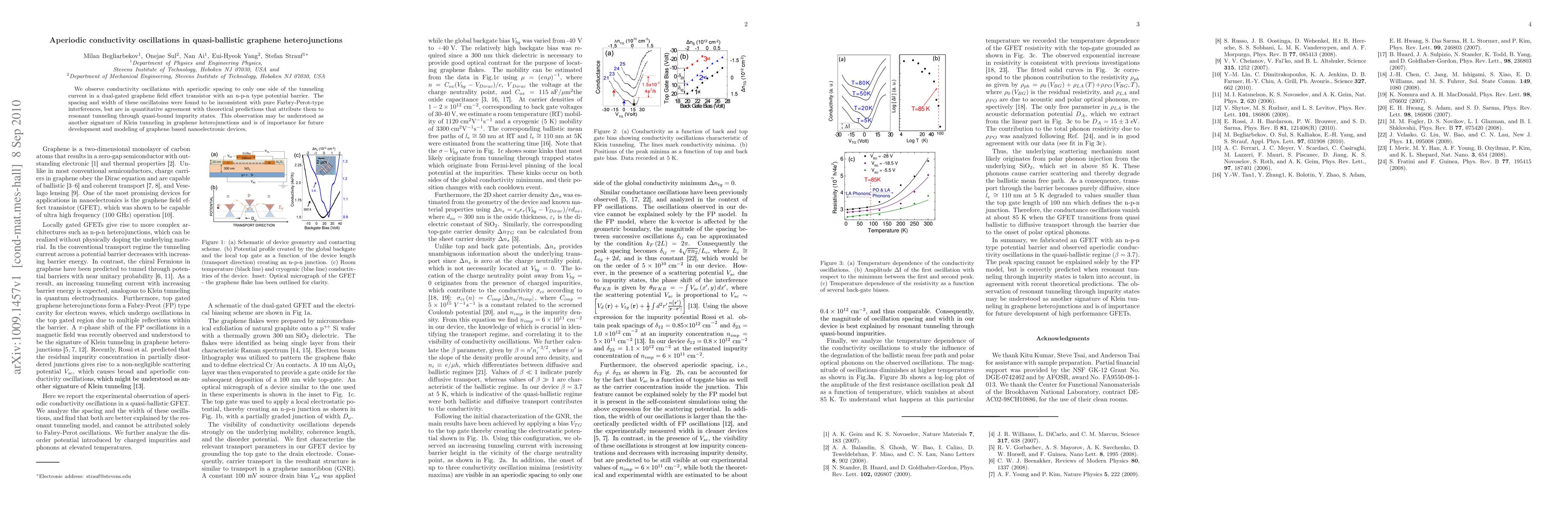 We observe conductivity oscillations with aperiodic spacing to only one side of the tunneling current in a dual-gated graphene field effect transistor with an n-p-n type potential barrier. The spacing and width of these oscillatoins were found to be inconsistent with pure Farbry-Perot-type interferences, but are in quantitative agreement with theoretical predictions that attribute them to resonant tunneling through quasi-bound impurity states. This observation may be understood as another signature of Klein tunneling in graphene heterojunctions and is of importance for future development and modeling of graphene based nanoelectronic devices.