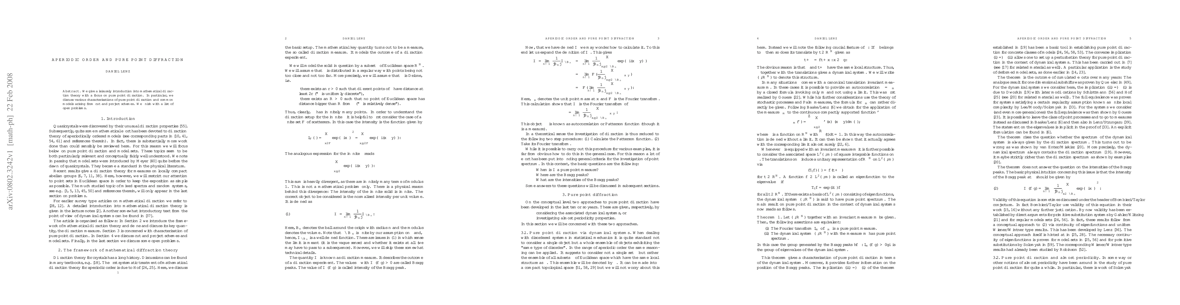 This paper provides an accessible introduction to mathematical diffraction theory, emphasizing pure point diffraction, and explores various characterizations and common models from cut and project schemes, concluding with a list of open research questions.