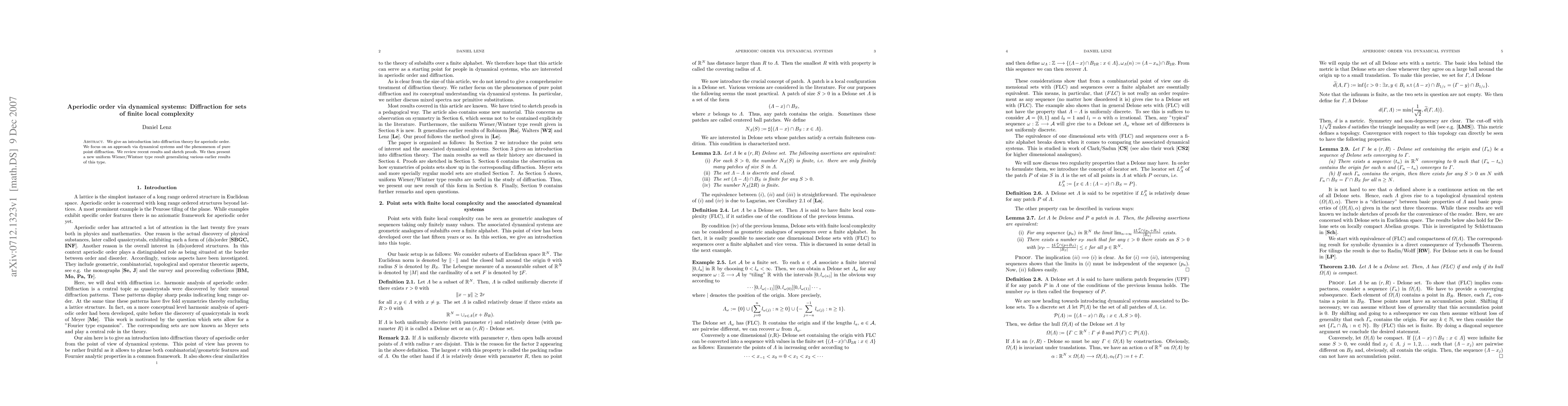 This paper introduces diffraction theory for aperiodic order using dynamical systems, emphasizing pure point diffraction and reviewing recent findings. It also presents a new uniform Wiener/Wintner type result that generalizes previous results on this topic.