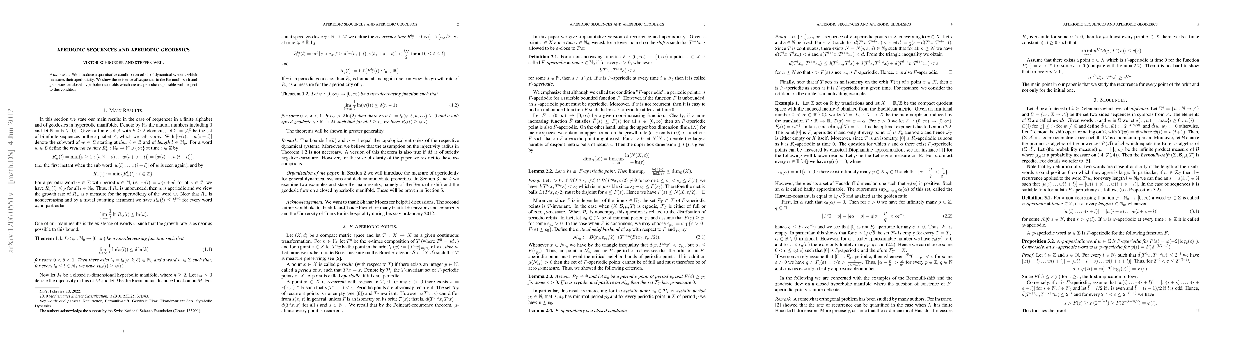 We introduce a quantitative condition on orbits of dynamical systems which measures their aperiodicity. We show the existence of sequences in the Bernoulli-shift and geodesics on closed hyperbolic manifolds which are as aperiodic as possible with respect to this condition.