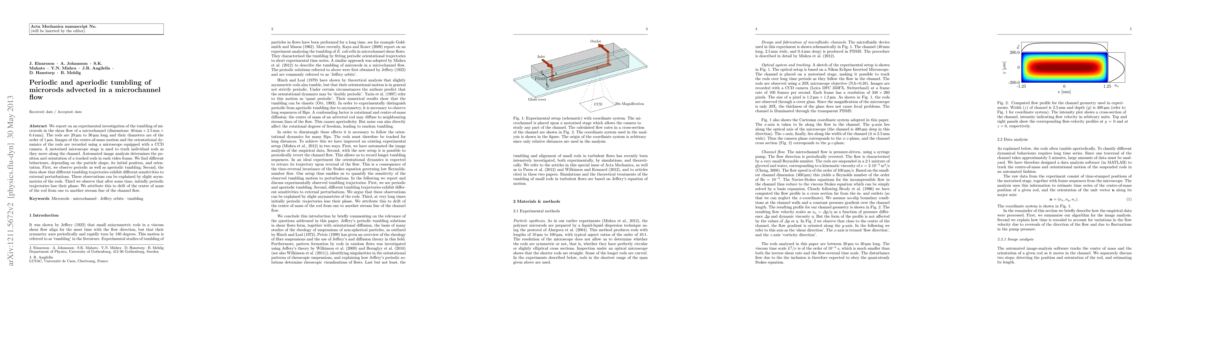 This study experimentally investigates the tumbling dynamics of microrods in a microchannel flow, revealing both periodic and aperiodic tumbling behaviors influenced by rod shape, initial conditions, and flow perturbations. The loss of periodic tumbling is attributed to the drift of the rod's center of mass across different streamlines.