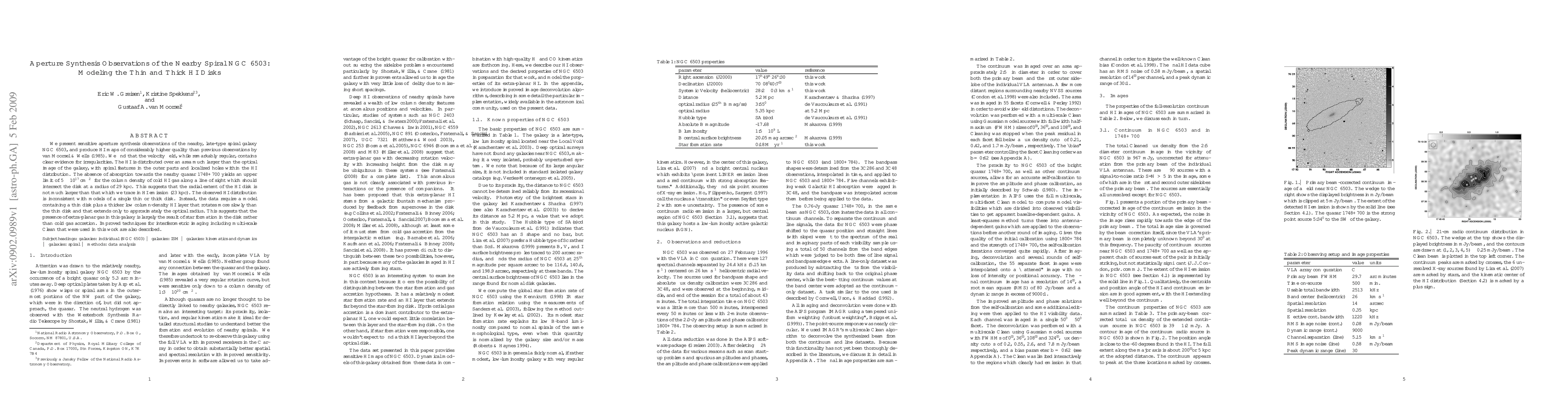 We present sensitive aperture synthesis observations of the nearby, late-type spiral galaxy NGC 6503, and produce HI maps of considerably higher quality than previous observations by van Moorsel & Wells (1985). We find that the velocity field, while remarkably regular, contains clear evidence for irregularities. The HI is distributed over an area much larger than the optical image of the galaxy, with spiral features in the outer parts and localized holes within the HI distribution. The absence of absorption towards the nearby quasar 1748+700 yields an upper limit of 5 10^{17} cm^{-2} for the column density of cold HI gas along a line of sight which should intersect the disk at a radius of 29 kpc. This suggests that the radial extent of the HI disk is not much larger than that which we trace in HI emission (23 kpc). The observed HI distribution is inconsistent with models of a single thin or thick disk. Instead, the data require a model containing a thin disk plus a thicker low column-density HI layer that rotates more slowly than the thin disk and that extends only to approximately the optical radius. This suggests that the presence of extra-planar gas in this galaxy is largely the result of star formation in the disk rather than cold gas accretion. Improved techniques for interferometric imaging including multi-scale Clean that were used in this work are also described.