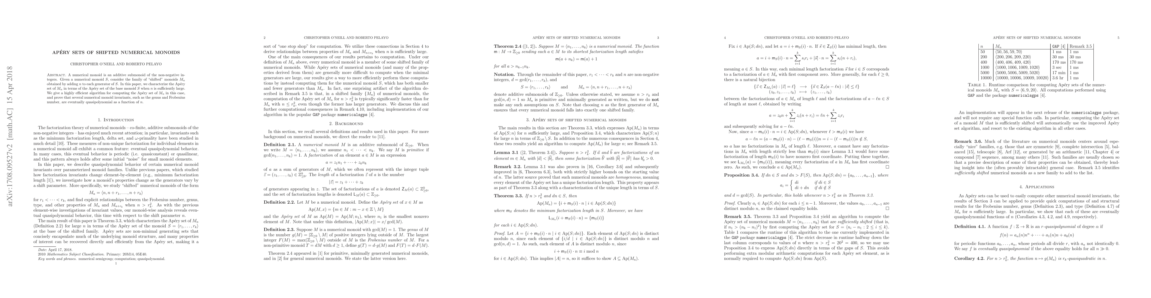 A numerical monoid is an additive submonoid of the non-negative integers. Given a numerical monoid $S$, consider the family of "shifted" monoids $M_n$ obtained by adding $n$ to each generator of $S$. In this paper, we characterize the Ap\'ery set of $M_n$ in terms of the Ap\'ery set of the base monoid $S$ when $n$ is sufficiently large. We give a highly efficient algorithm for computing the Ap\'ery set of $M_n$ in this case, and prove that several numerical monoid invariants, such as the genus and Frobenius number, are eventually quasipolynomial as a function of $n$.