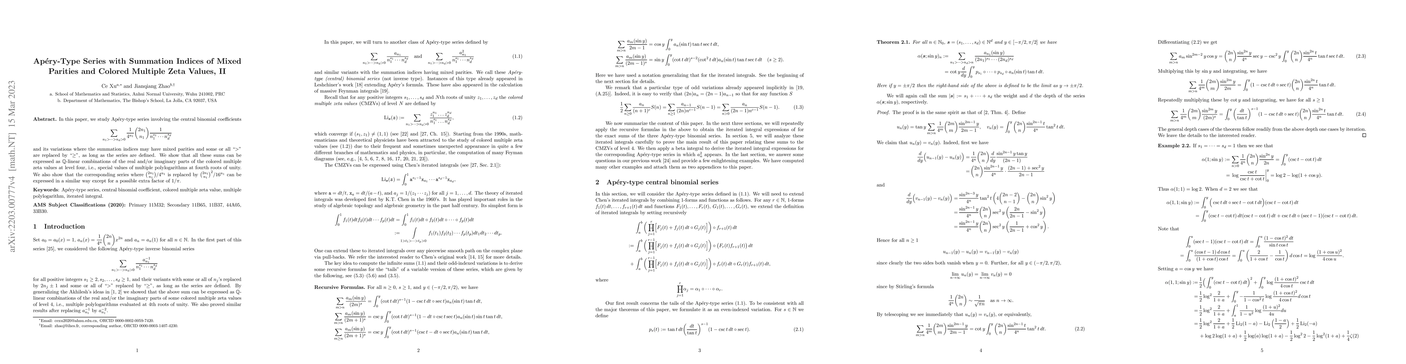 This paper investigates Apéry-type series with mixed-parity summation indices and demonstrates their representation as $\mathbb Q$-linear combinations of colored multiple zeta values at level four, specifically involving special values of multiple polylogarithms at fourth roots of unity. It also extends the results to series with squared central binomial coefficients, with an additional factor of $1/\pi$ in some cases.