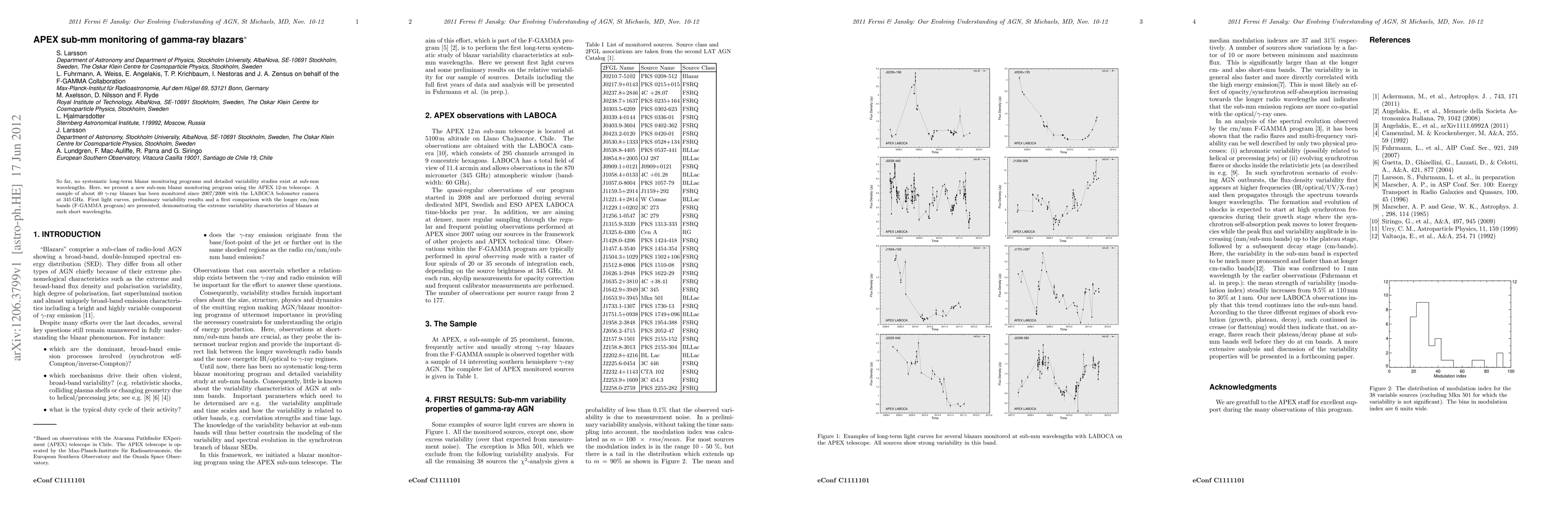 This paper introduces a new sub-mm monitoring program using the APEX telescope to observe gamma-ray blazars since 2007, revealing significant variability at 345 GHz and comparing these results with cm/mm bands. The study highlights the extreme variability of blazars at sub-mm wavelengths.
