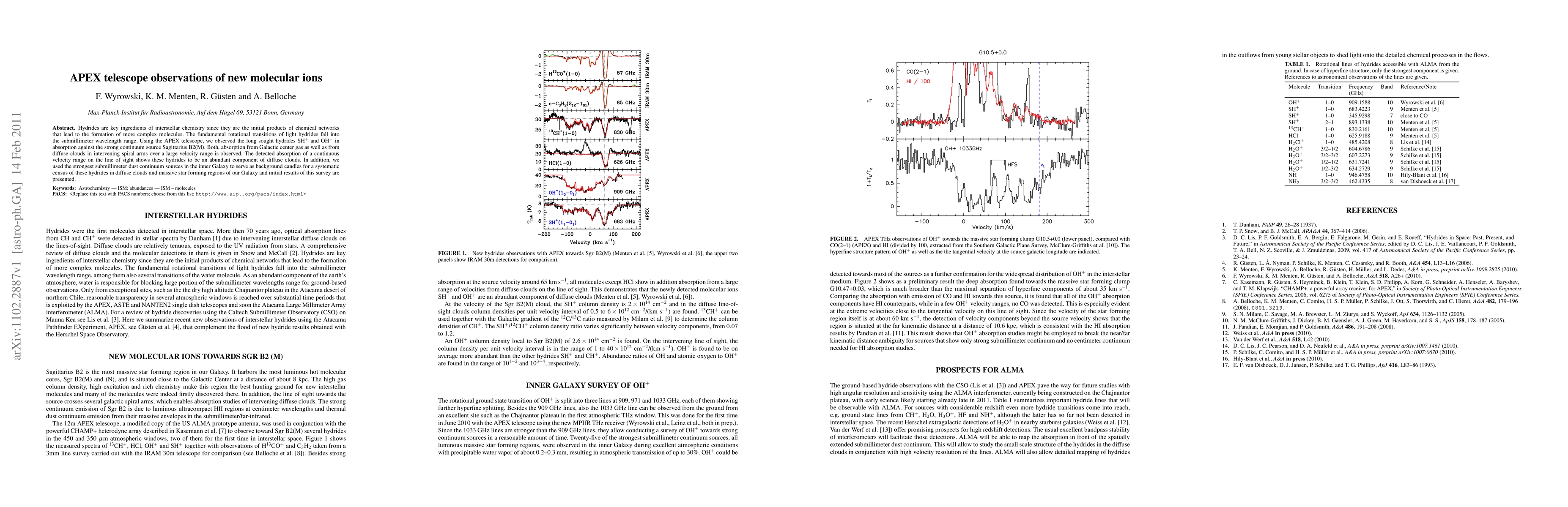 Researchers detected two new molecular ions, SH+ and OH+, in interstellar clouds using the APEX telescope, revealing they are abundant components of diffuse clouds in our Galaxy.