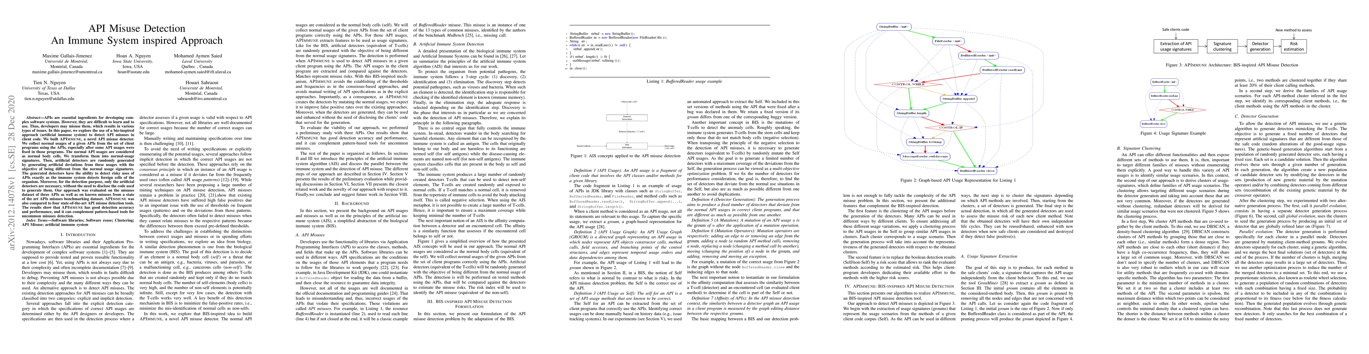 This paper proposes a bio-inspired approach using an artificial immune system to detect API misuses in client code. APIMMUNE, the developed detector, creates artificial detectors from normal API usages to identify risky uses, achieving high detection accuracy and performance compared to state-of-the-art tools.