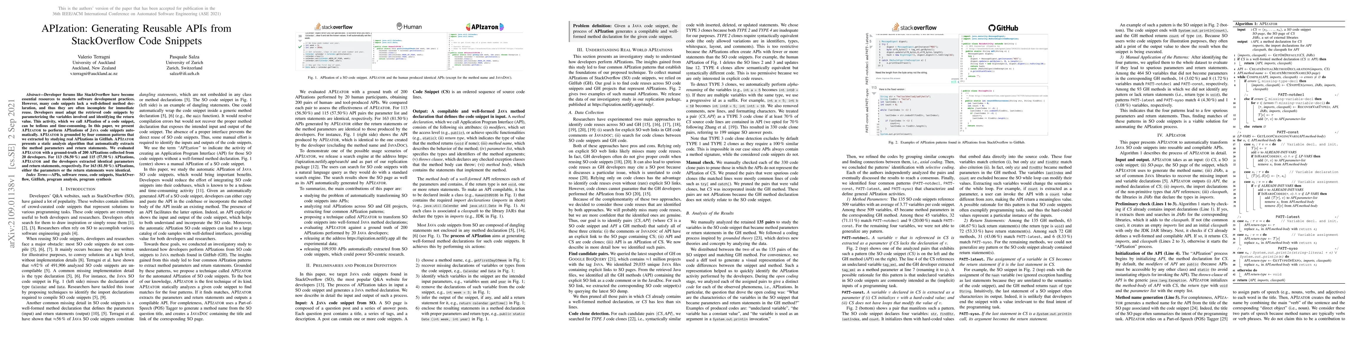 Researchers developed APIzator to automatically extract method parameters and return statements from Java code snippets, achieving accuracy of 56.50% and 57.50% in matching parameters and return statements with human evaluators.