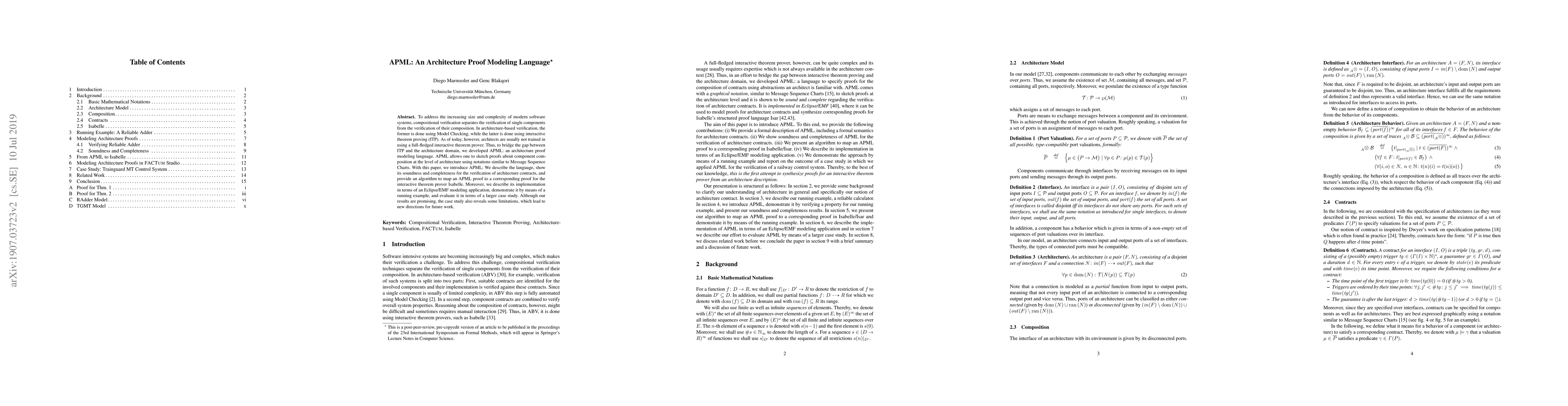 This paper introduces APML, an architecture proof modeling language designed to bridge the gap between interactive theorem proving and architecture verification. APML allows architects to sketch proofs about component composition using notations akin to Message Sequence Charts, and it is shown to be sound and complete for verifying architecture contracts.