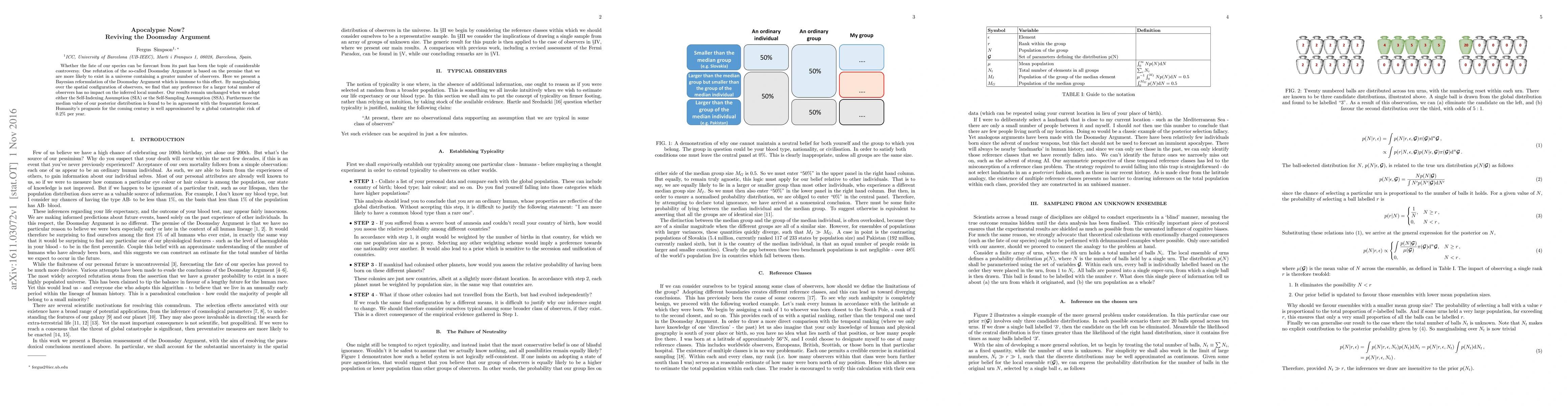 Whether the fate of our species can be forecast from its past has been the topic of considerable controversy. One refutation of the so-called Doomsday Argument is based on the premise that we are more likely to exist in a universe containing a greater number of observers. Here we present a Bayesian reformulation of the Doomsday Argument which is immune to this effect. By marginalising over the spatial configuration of observers, we find that any preference for a larger total number of observers has no impact on the inferred local number. Our results remain unchanged when we adopt either the Self-Indexing Assumption (SIA) or the Self-Sampling Assumption (SSA). Furthermore the median value of our posterior distribution is found to be in agreement with the frequentist forecast. Humanity's prognosis for the coming century is well approximated by a global catastrophic risk of 0.2% per year.