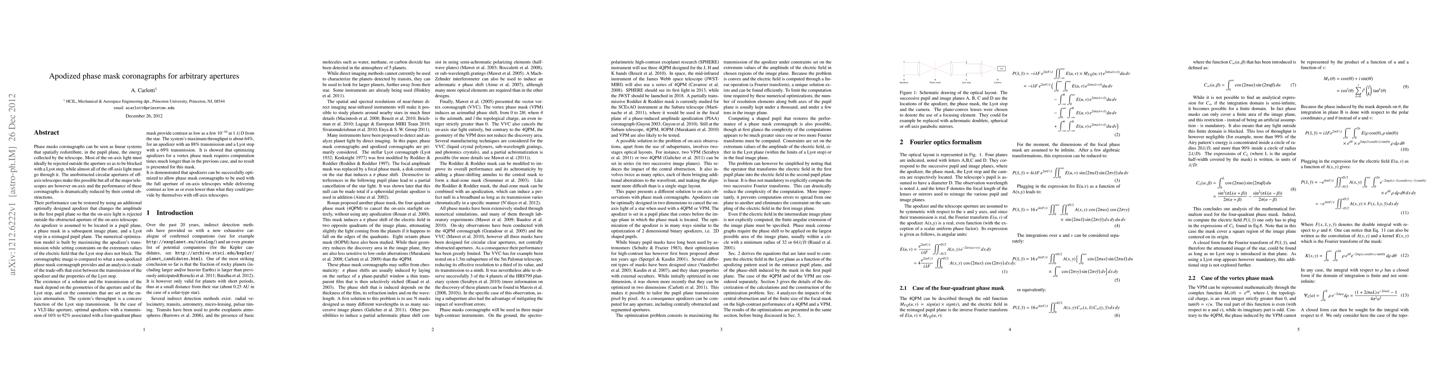 This paper proposes apodized phase mask coronagraphs to enhance the performance of on-axis telescopes by optimally redistributing light in the pupil plane, thus improving contrast and reducing the impact of central obstructions. The study finds that apodizers with transmissions between 0.16 and 0.92 can achieve contrasts as low as 1e-10, with maximum system throughput of 0.64 for specific configurations.