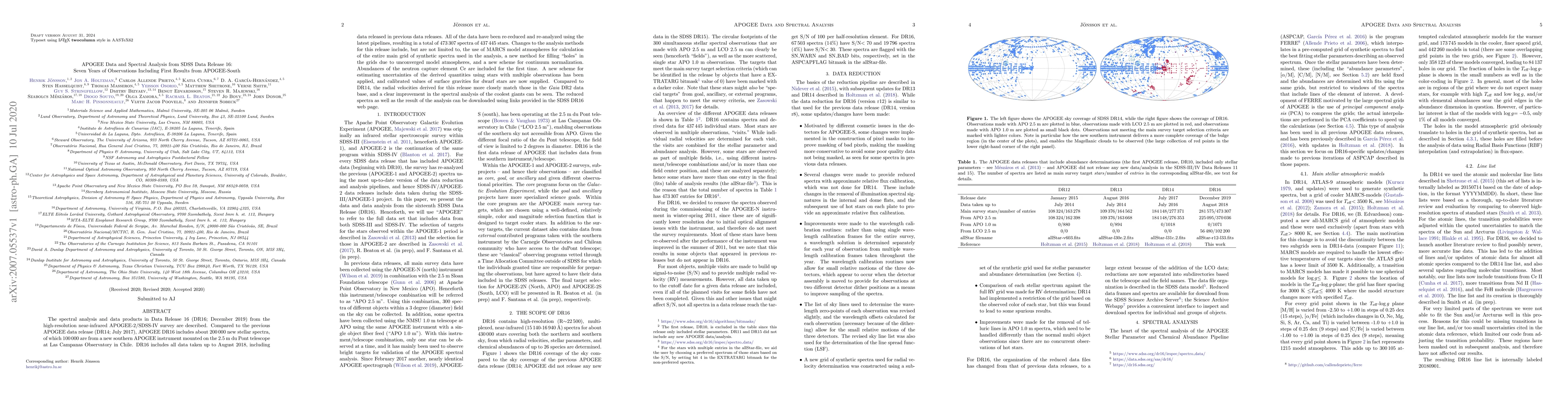 The APOGEE Data Release 16 (DR16) includes 200,000 new stellar spectra, with 100,000 from the new APOGEE-South instrument in Chile. This release features re-reduced data, updated analysis methods, and improved radial velocities aligning better with Gaia DR2.