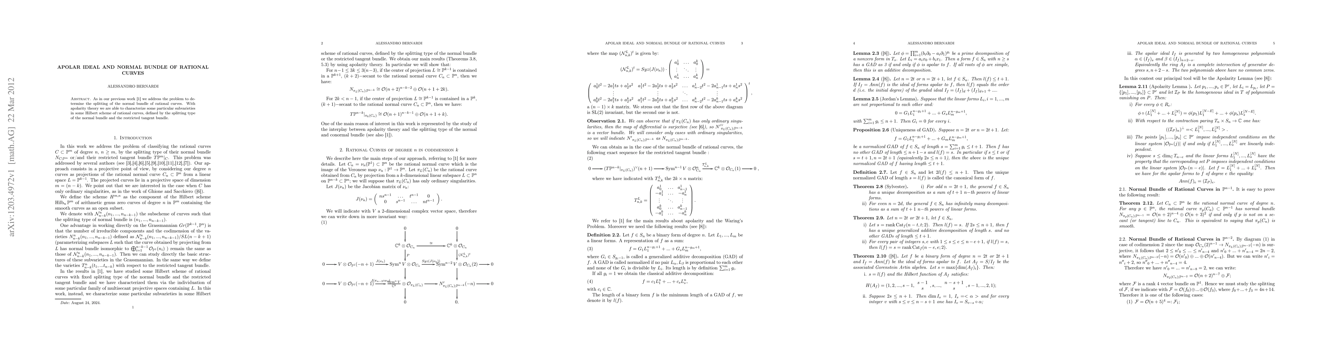 This paper investigates the splitting of the normal bundle of rational curves using apolarity theory, characterizing specific subvarieties in the Hilbert scheme based on the splitting type of the normal and restricted tangent bundles.