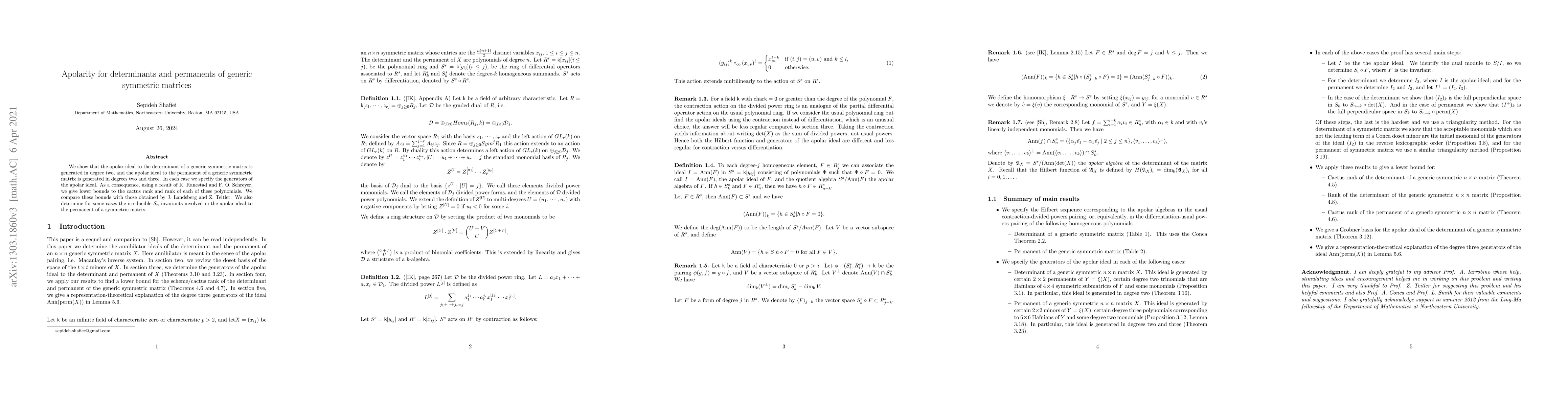We show that the apolar ideal to the determinant of a generic symmetric matrix is generated in degree two, and the apolar ideal to the permanent of a generic symmetric matrix is generated in degrees two and three. In each case we specify the generators of the apolar ideal. As a consequence, using a result of K. Ranestad and F. O. Schreyer we give lower bounds to the cactus rank and rank of each of these polynomials. We compare these bounds with those obtained by J. Landsberg and Z. Teitler.