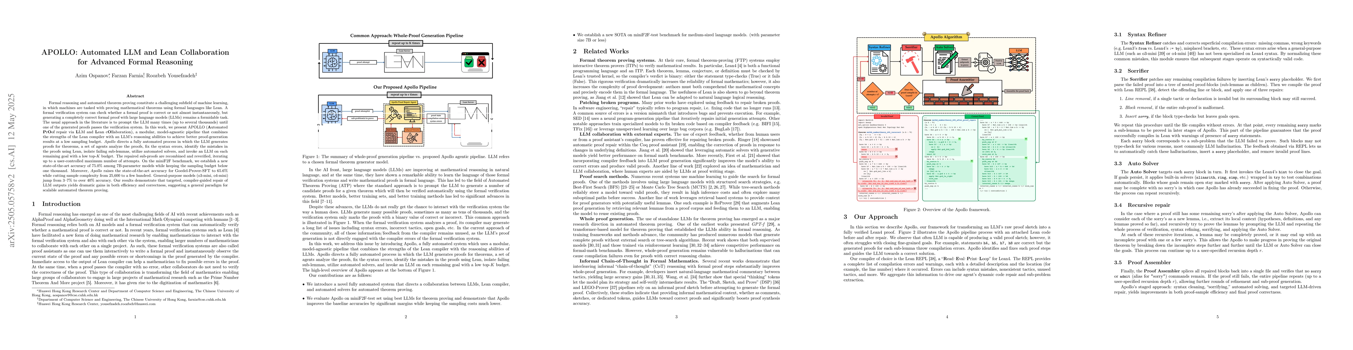 APOLLO presents a novel, efficient pipeline that combines the strengths of the Lean compiler and LLMs for automated formal reasoning, significantly improving proof generation accuracy and efficiency.