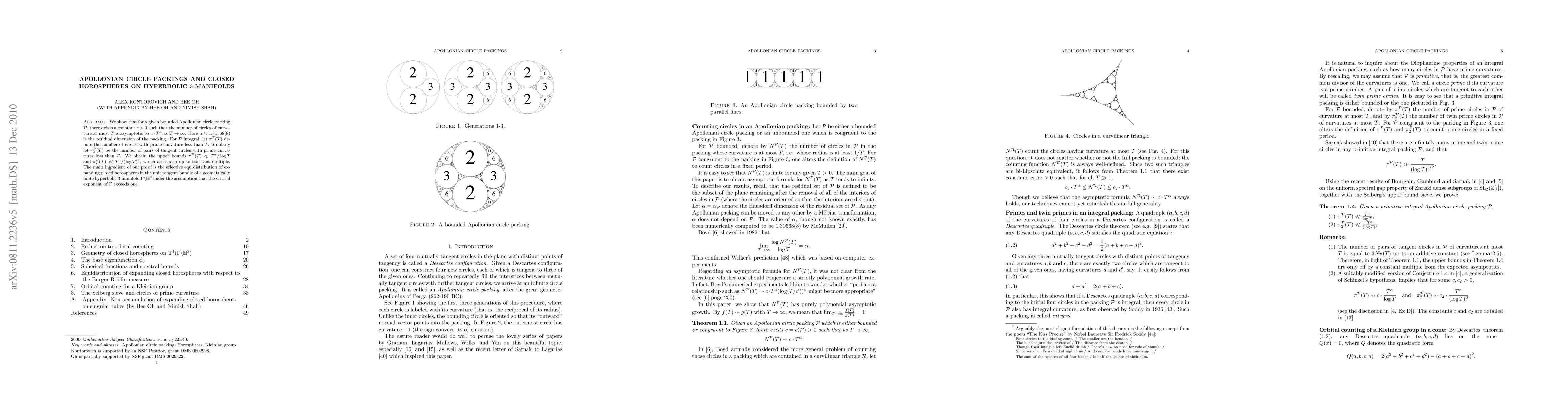 Summary: This paper provides an asymptotic formula for circles in bounded Apollonian circle packings and establishes upper bounds for prime curvature circles in integral packings. The proof leverages the effective equidistribution of expanding horospheres on hyperbolic 3-manifolds with geometrically finite properties.