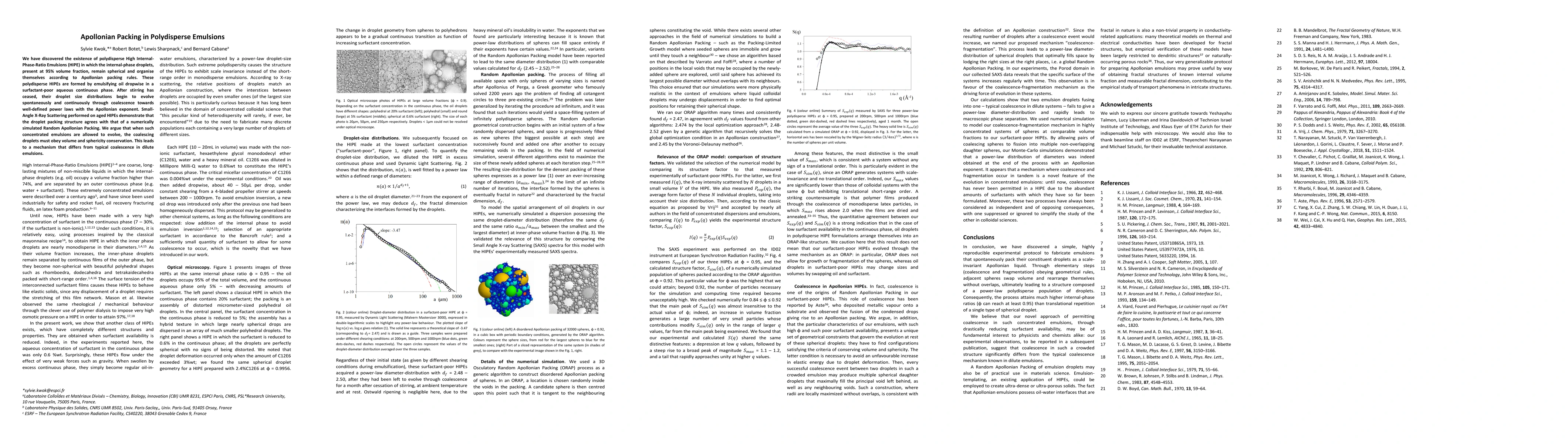 The research utilized surfactant-poor oil-surfactant-water two-phase systems, employing Dynamic Light Scattering and Small Angle X-Ray Scattering to analyze droplet size distributions and packing structures. Numerical simulations, specifically a 3D Osculatory Random Apollonian Packing (ORAP) process, were used to model the spatial arrangement of oil droplets.