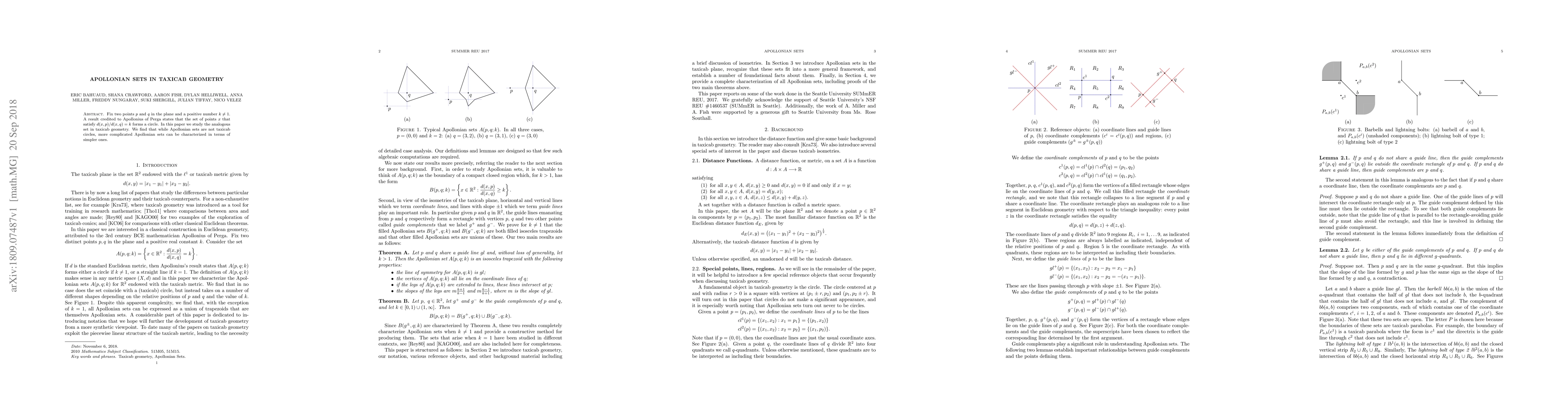 Summary: This paper explores Apollonian sets in taxicab geometry, where the analogous set to Apollonius's circles does not form taxicab circles but can be decomposed into simpler Apollonian sets.
