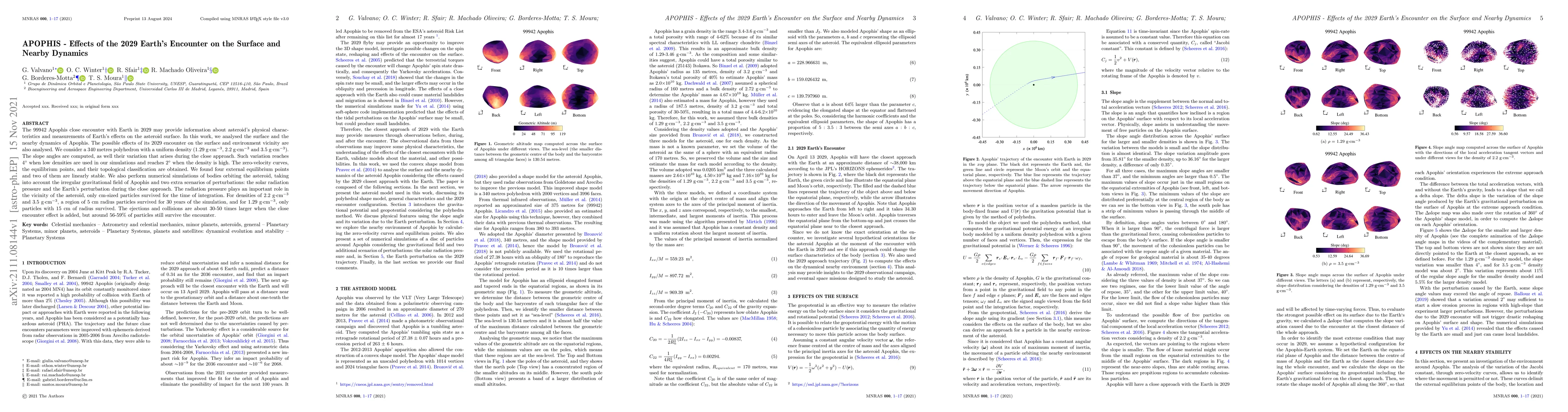 A study analyzed Apophis asteroid's surface and nearby dynamics before its 2029 Earth encounter, finding that the event could eject particles, causing damage to the environment, with varying effects based on asteroid density.