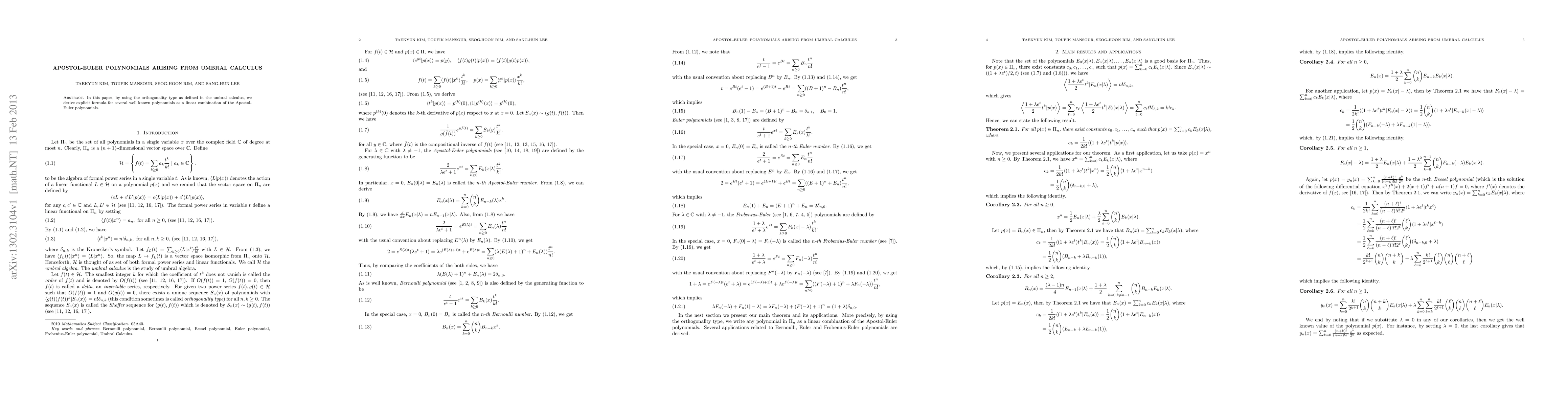 The paper uses umbral calculus to derive explicit formulas for several well-known polynomials as linear combinations of Apostol-Euler polynomials, employing an orthogonality type defined in umbral calculus.