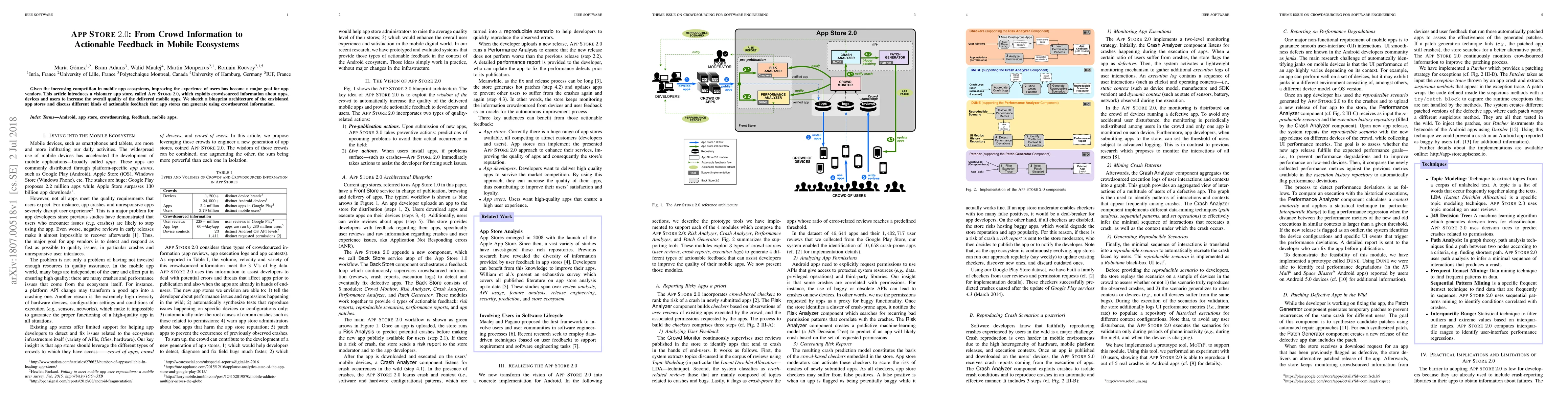 A new app store model, APP STORE 2.0, uses crowdsourced information to improve mobile app quality, providing actionable feedback for vendors.