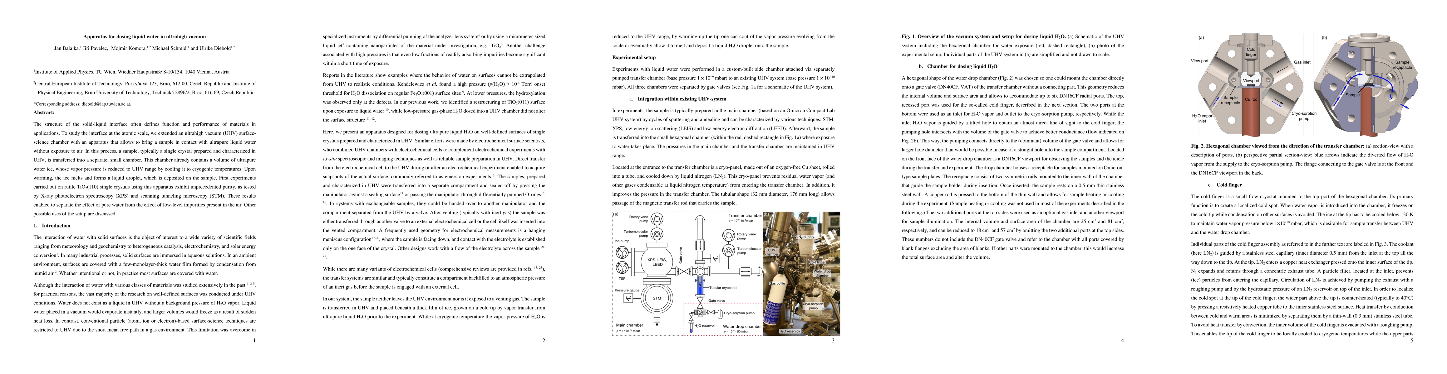The structure of the solid-liquid interface often defines function and performance of materials in applications. To study the interface at the atomic scale, we extended an ultrahigh vacuum (UHV) surface-science chamber with an apparatus that allows to bring a sample in contact with ultrapure liquid water without exposure to air. In this process, a sample, typically a single crystal prepared and characterized in UHV, is transferred into a separate, small chamber. This chamber already contains a volume of ultrapure water ice, whose vapor pressure is reduced to UHV range by cooling it to cryogenic temperatures. Upon warming, the ice melts and forms a liquid droplet, which is deposited on the sample. First experiments carried out on rutile TiO2(110) single crystals using this apparatus exhibit unprecedented purity, as tested by X-ray photoelectron spectroscopy (XPS) and scanning tunneling microscopy (STM). These results enabled to separate the effect of pure water from the effect of low-level impurities present in the air. Other possible uses of the setup are discussed.