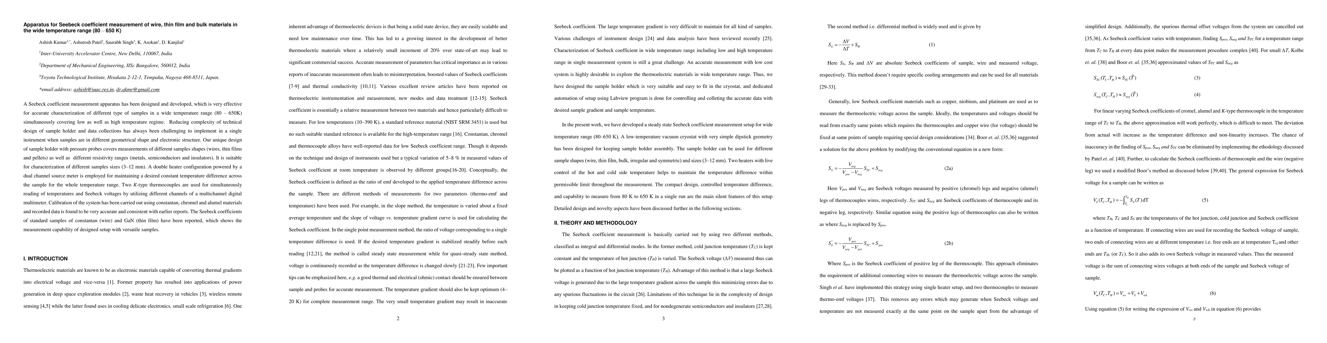 This research contributes to the development of new thermoelectric measurement techniques with high accuracy and precision.