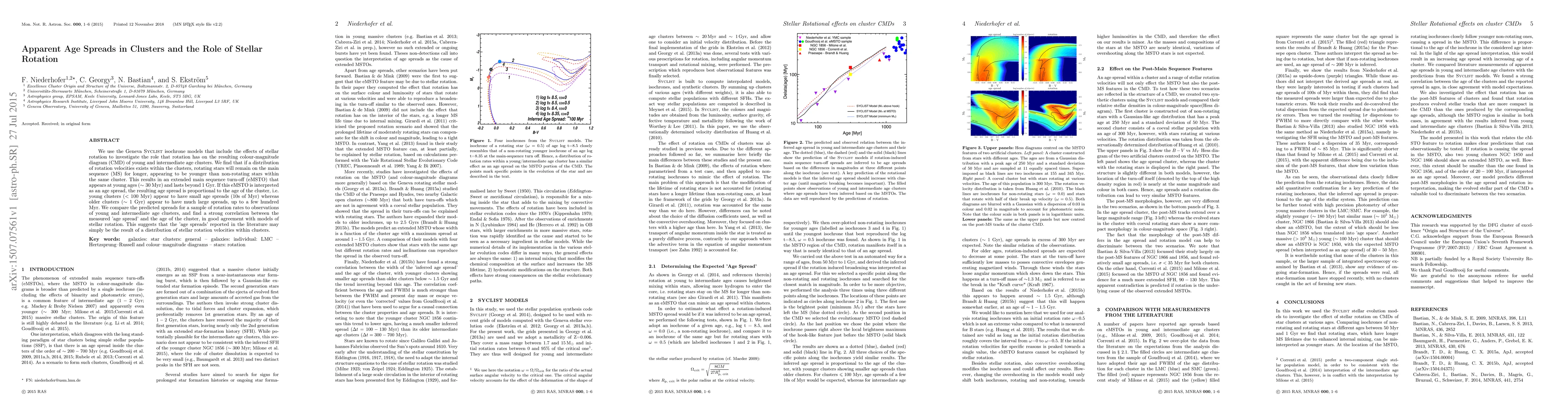 This paper investigates how stellar rotation affects the apparent age of clusters, finding that rotating stars stay on the main sequence longer, leading to an extended main sequence turn-off (eMSTO). The study suggests that reported 'age spreads' in clusters may actually reflect the distribution of stellar rotation velocities rather than true age differences.