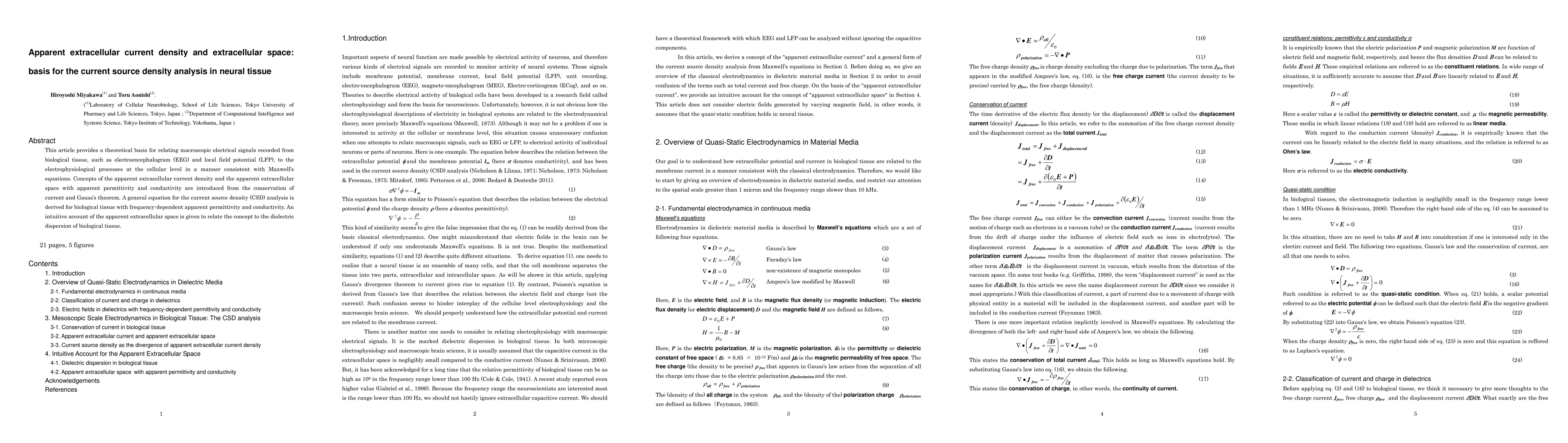 This paper establishes a theoretical framework for linking macroscopic electrical signals from neural tissue to cellular-level electrophysiological processes using concepts of apparent extracellular current density and space, derived from Maxwell's equations and conservation principles. It introduces a general equation for current source density analysis in biological tissue, considering frequency-dependent permittivity and conductivity.
