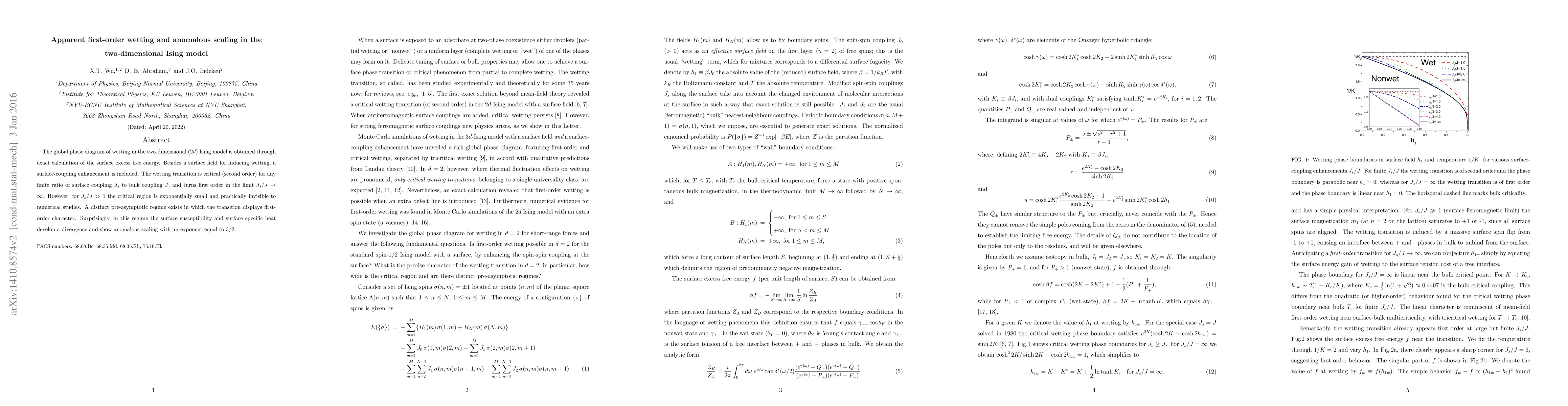 The global phase diagram of wetting in the two-dimensional (2d) Ising model is obtained through exact calculation of the surface excess free energy. Besides a surface field for inducing wetting, a surface-coupling enhancement is included. The wetting transition is critical (second order) for any finite ratio of surface coupling J_s to bulk coupling J, and turns first order in the limit J_s/J to infinity. However, for J_s/J much larger than 1 the critical region is exponentially small and practically invisible to numerical studies. A distinct pre-asymptotic regime exists in which the transition displays first-order character. Surprisingly, in this regime the surface susceptibility and surface specific heat develop a divergence and show anomalous scaling with an exponent equal to 3/2.
