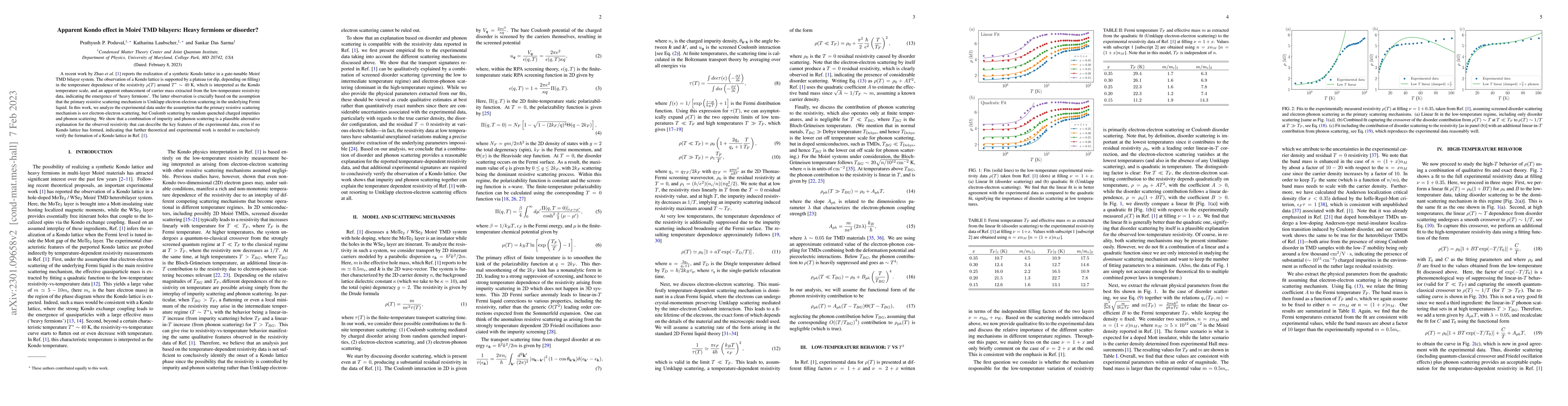 This paper investigates the apparent Kondo effect in Moir\'e TMD bilayers, questioning whether the observed heavy fermion behavior stems from a Kondo lattice or is due to disorder. The authors propose that Coulomb scattering by impurities and phonon scattering can explain the resistivity features without invoking a Kondo lattice, suggesting further investigation is needed to confirm the presence of a Kondo effect.