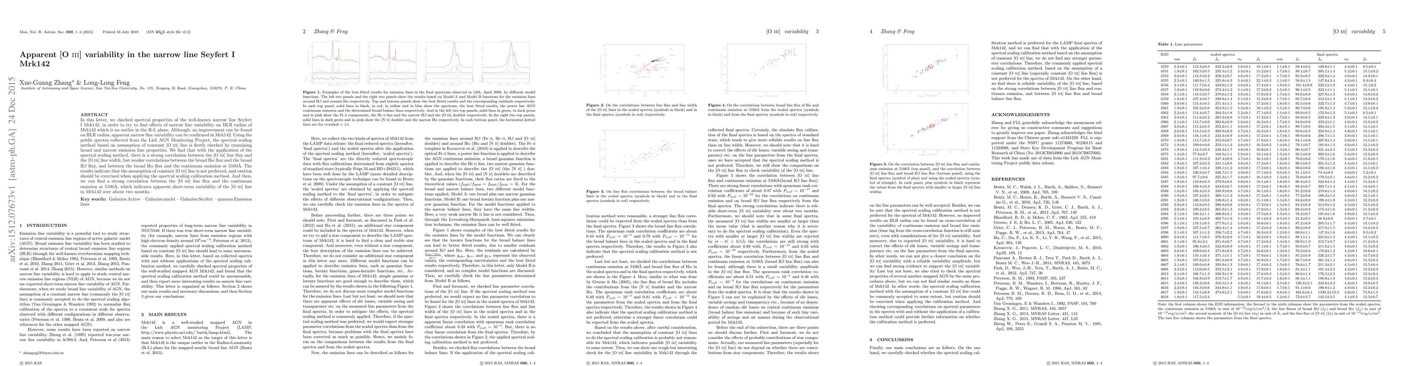 In this letter, we checked spectral properties of the well-known narrow line Seyfert I Mrk142, in order to try to find effects of narrow line variability on BLR radius of Mrk142 which is an outlier in the R-L plane. Although, no improvement can be found on BLR radius, apparent narrow line variability can be confirmed in Mrk142. Using the public spectra collected from the Lick AGN Monitoring Project, the spectral scaling method based on assumption of constant \oiii line is firstly checked by examining broad and narrow emission line properties. We find that with the application of the spectral scaling method, there is a strong correlation between the \oiii line flux and the \oiii line width, but weaker correlations between the broad H$\alpha$ flux and the broad H$\beta$ flux, and between the broad H$\alpha$ flux and the continuum emission at 5100\AA. The results indicate that the assumption of constant \oiii line is not preferred, and caution should be exercised when applying the spectral scaling calibration method. And then, we can find a strong correlation between the \oiii line flux and the continuum emission at 5100\AA, which indicates apparent short-term variability of the \oiii line in Mrk142 over about two months.