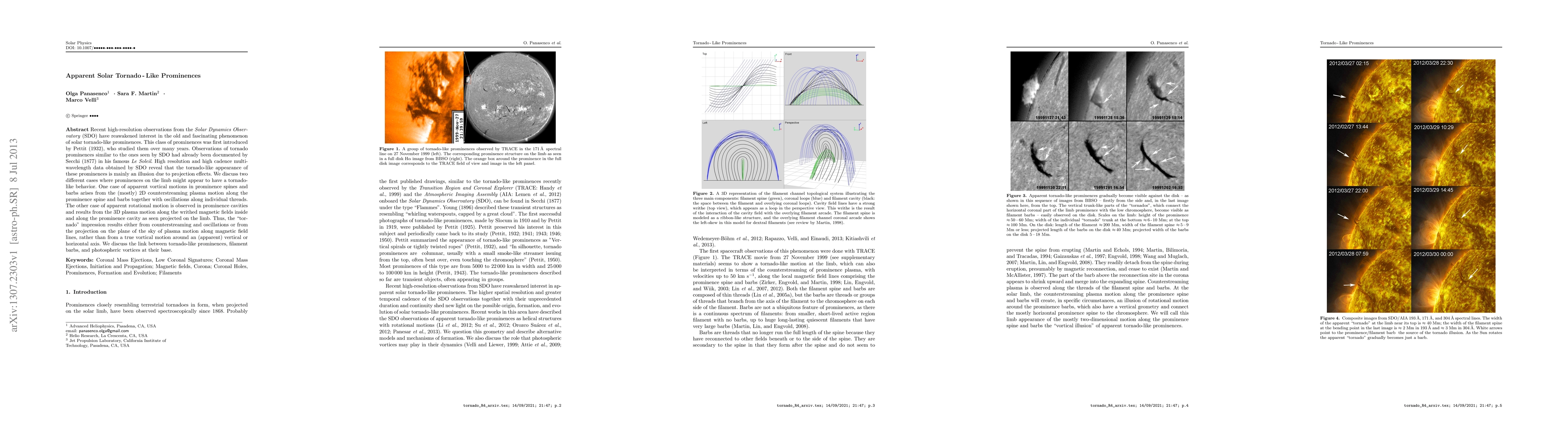 Recent high-resolution observations from the SDO reveal that solar tornado-like prominences primarily appear due to projection effects rather than true rotational motion, arising from counterstreaming plasma and oscillations or 3D motion along magnetic fields. The phenomenon is linked to filament barbs and photospheric vortices.