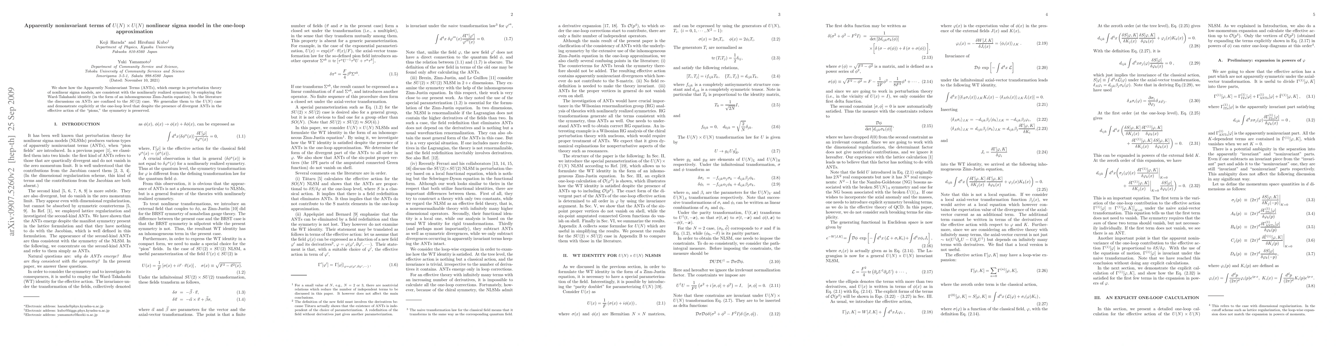 We show how the Apparently Noninvariant Terms (ANTs), which emerge in perturbation theory of nonlinear sigma models, are consistent with the nonlinearly realized symmetry by employing the Ward-Takahashi identity (in the form of an inhomogeneous Zinn-Justin equation). In the literature the discussions on ANTs are confined to the SU(2) case. We generalize them to the U(N) case and demonstrate explicitly at the one-loop level that despite the presence of divergent ANTs in the effective action of the "pions", the symmetry is preserved.