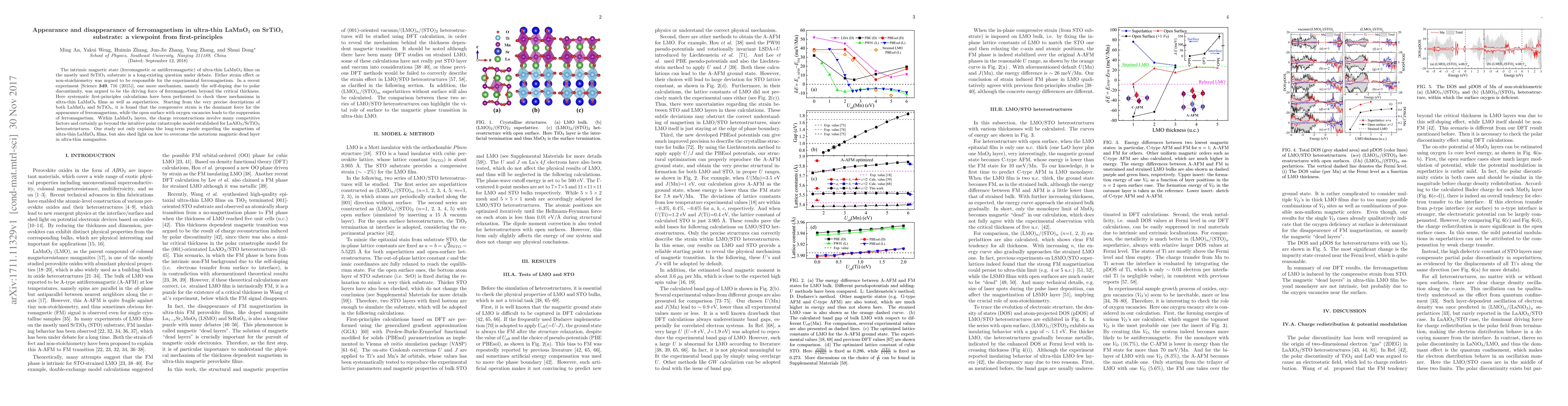 The intrinsic magnetic state (ferromagnetic or antiferromagnetic) of ultra-thin LaMnO$_3$ films on the mostly used SrTiO$_3$ substrate is a long-existing question under debate. Either strain effect or non-stoichiometry was argued to be responsible for the experimental ferromagnetism. In a recent experiment [Science \textbf{349}, 716 (2015)], one more mechanism, namely the self-doping due to polar discontinuity, was argued to be the driving force of ferromagnetism beyond the critical thickness. Here systematic first-principles calculations have been performed to check these mechanisms in ultra-thin LaMnO$_3$ films as well as superlattices. Starting from the very precise descriptions of both LaMnO$_3$ and SrTiO$_3$, it is found that the compressive strain is the dominant force for the appearance of ferromagnetism, while the open surface with oxygen vacancies leads to the suppression of ferromagnetism. Within LaMnO$_3$ layers, the charge reconstructions involve many competitive factors and certainly go beyond the intuitive polar catastrophe model established for LaAlO$_3$/SrTiO$_3$ heterostructures. Our study not only explains the long-term puzzle regarding the magnetism of ultra-thin LaMnO$_3$ films, but also shed light on how to overcome the notorious magnetic dead layer in ultra-thin manganites.