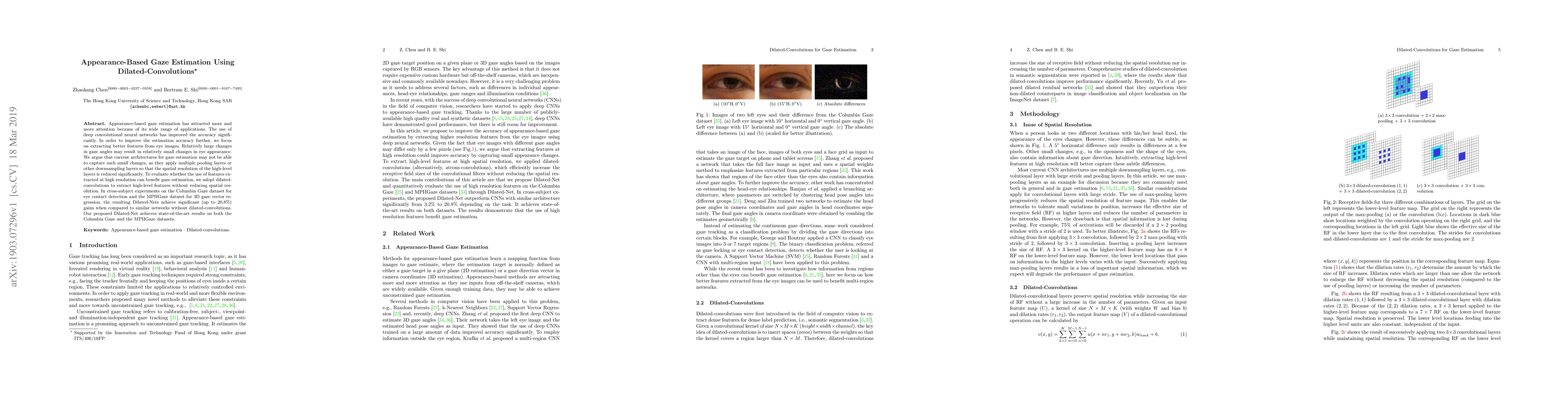 This paper proposes Dilated-Nets for appearance-based gaze estimation, utilizing dilated-convolutions to extract high-resolution features without losing spatial information. The results show significant improvements, achieving state-of-the-art performance on the Columbia Gaze and MPIIGaze datasets.