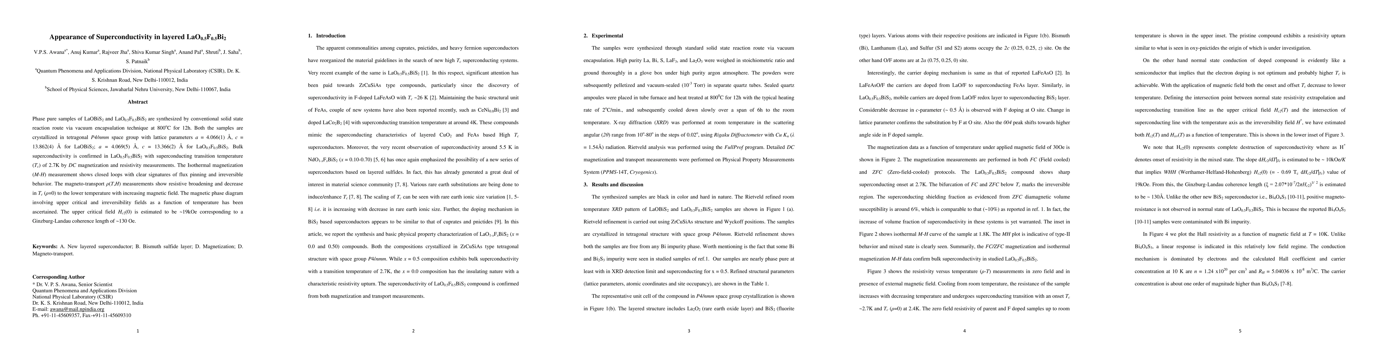 This paper reports the synthesis and characterization of the new BiS2-based superconductor LaO0.5F0.5BiS2, which exhibits bulk superconductivity with a transition temperature (Tc) of 2.7K, confirmed by DC magnetization and resistivity measurements. The study also investigates its magnetic and transport properties under various magnetic fields.