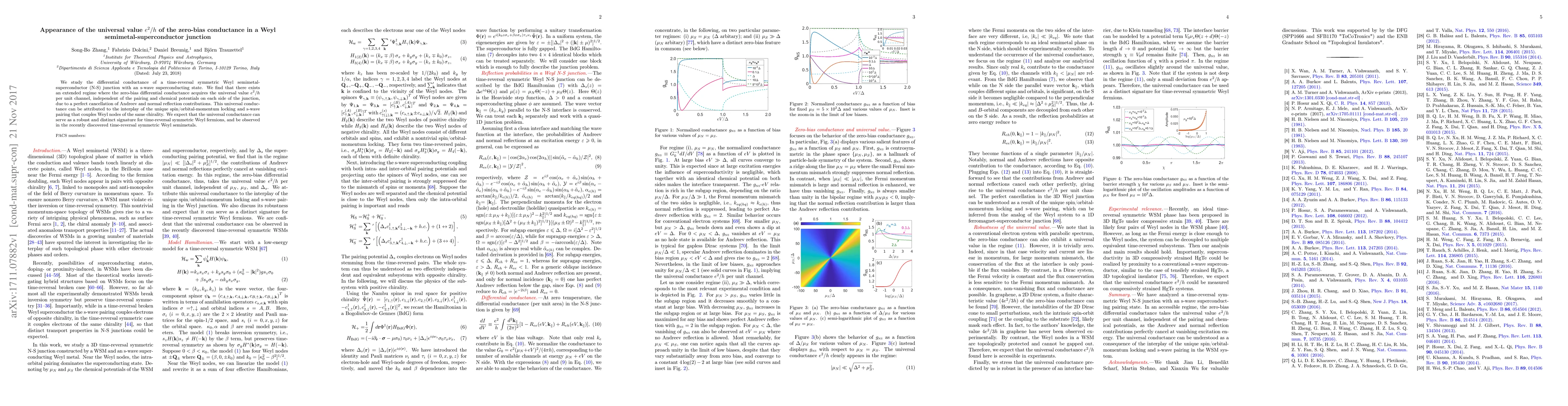 We study the differential conductance of a time-reversal symmetric Weyl semimetal-superconductor (N-S) junction with an s-wave superconducting state. We find that there exists an extended regime where the zero-bias differential conductance acquires the universal value $e^{2}/h$ per unit channel, independent of the pairing and chemical potentials on each side of the junction, due to a perfect cancellation of Andreev and normal reflection contributions. This universal conductance can be attributed to the interplay of the unique spin/orbital-momentum locking and s-wave pairing that couples Weyl nodes of the same chirality. We expect that the universal conductance can serve as a robust and distinct signature for time-reversal symmetric Weyl fermions, and be observed in the recently discovered time-reversal symmetric Weyl semimetals.
