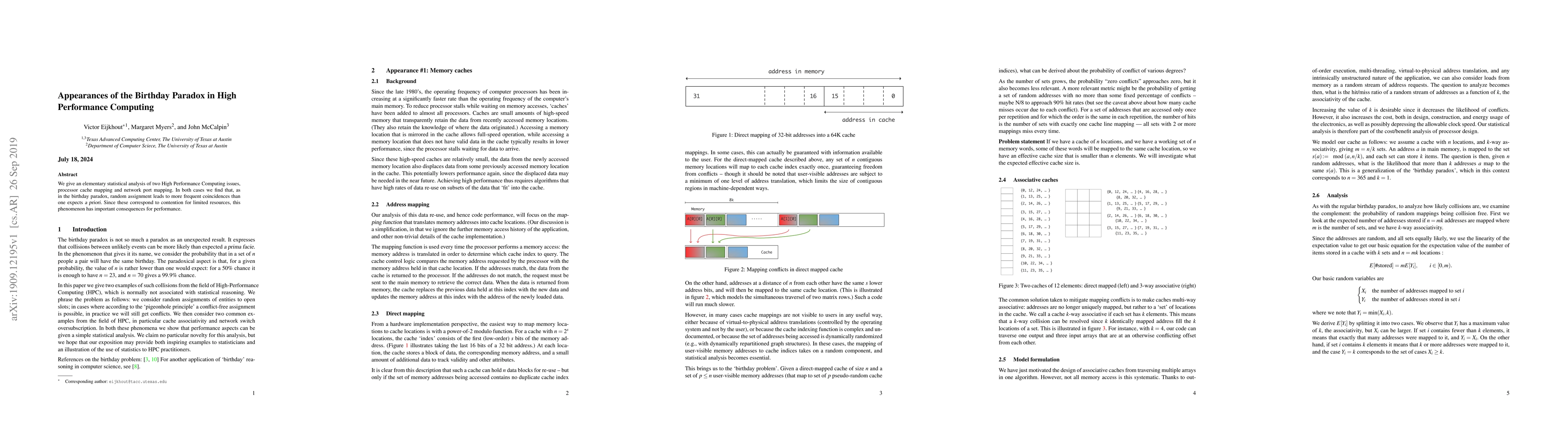 We give an elementary statistical analysis of two High Performance Computing issues, processor cache mapping and network port mapping. In both cases we find that, as in the birthday paradox, random assignment leads to more frequent coincidences than one expects a priori. Since these correspond to contention for limited resources, this phenomenon has important consequences for performance.