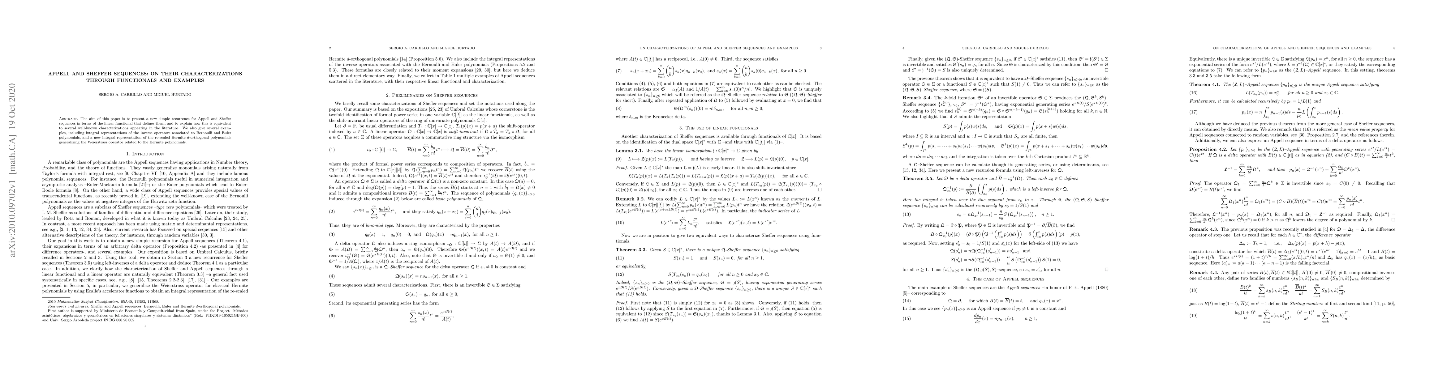This paper introduces a straightforward recurrence for Appell and Sheffer sequences using a defining linear functional, equating it with established characterizations. It also provides examples, such as integral representations for inverse operators of Bernoulli and Euler polynomials, and a new integral representation for re-scaled Hermite d-orthogonal polynomials.
