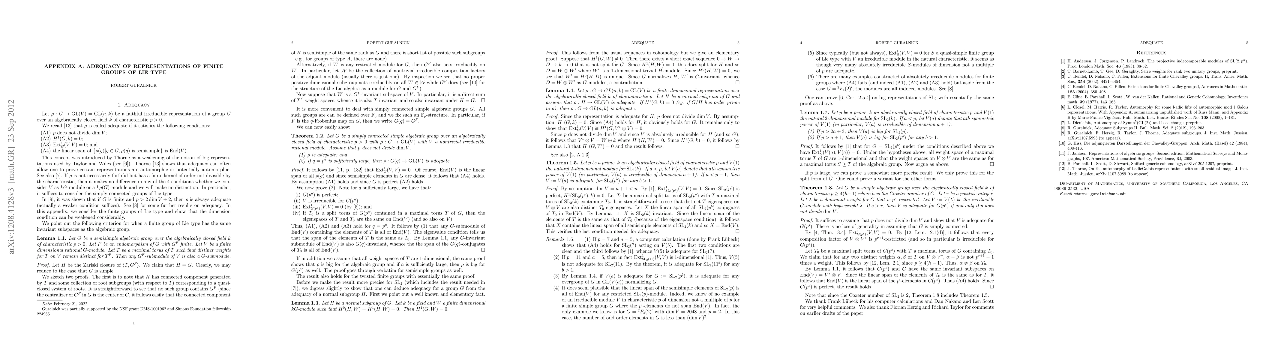 Thorne introduced the notion of adequate representations as a weakening of the big representations used by Wiles and Taylor and others. In this appendix to Dieulefait's paper, Automorphy of Symm5(GL(2)) and base change, we show that certain representations of SL(2,q) are adequate. This is used by Dieulefait to prove results about Hecke eigenforms of level 1 and newforms. We also prove some general results about adequacy for representations of finite groups of Lie type in the natural characteristic.